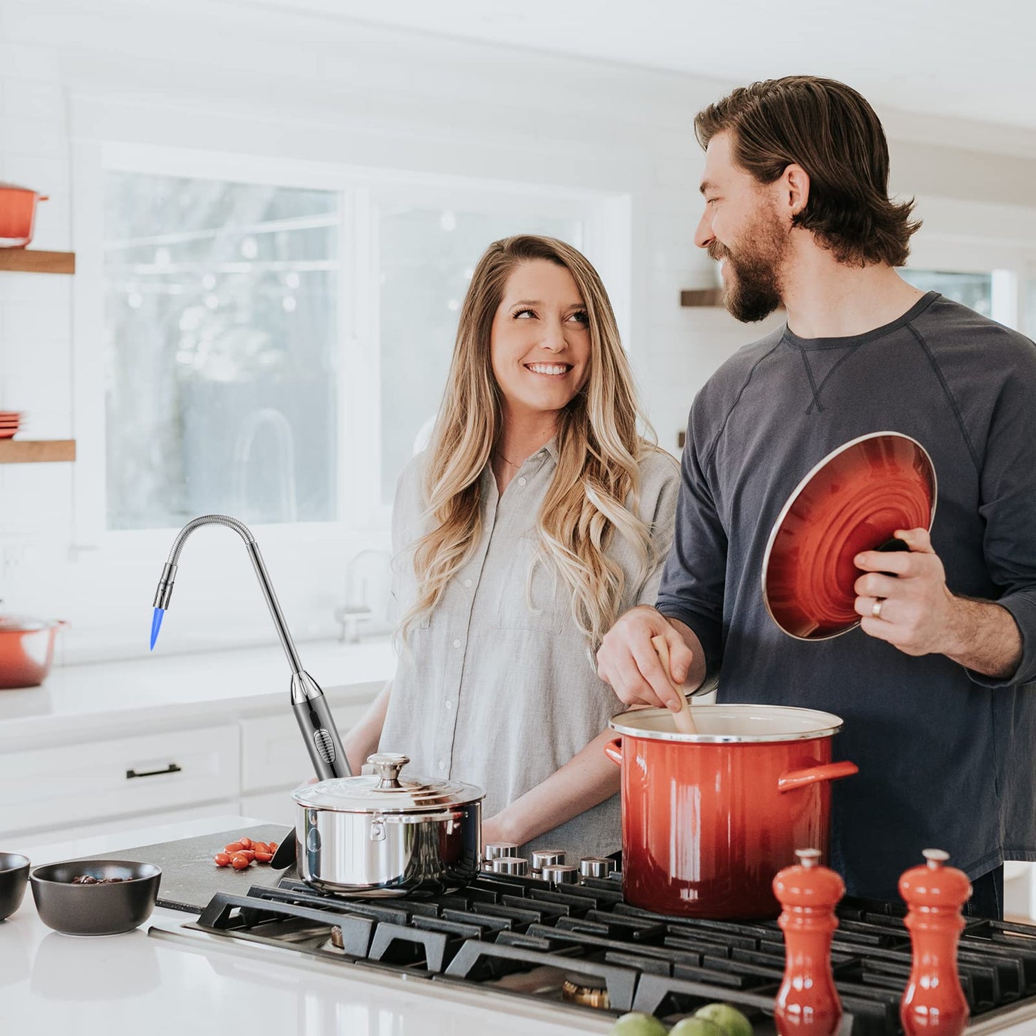 - [Flexible Long Neck Lighter & 360°Rotation ]:Moonsees butane lighter has 9.85inc long 360°flexible stainless steel hose, 6.7inc long stainless steel handle and 16.55inc in total length.The long-handled gas lighters can rotate 360 freely for your needs,The long neck design protects you from burning especially when lighting for cookers,wild explorer,wood burners,large candles and tea lighter.