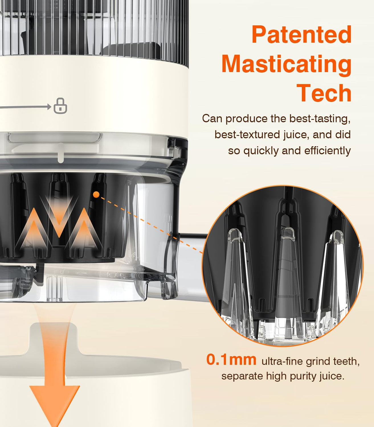 - 【Enhanced Cold Press Technology】This cold press juicer features advanced 6 stages of spiral extraction, combined with innovative 0.1mm ultra-fine compound grinding teeth to ensure juice extraction. This preserves vital nutrients and enzymes with enhanced fineness and purity, making the juice optimal for absorption. It is an ideal choice for health-conscious individuals.