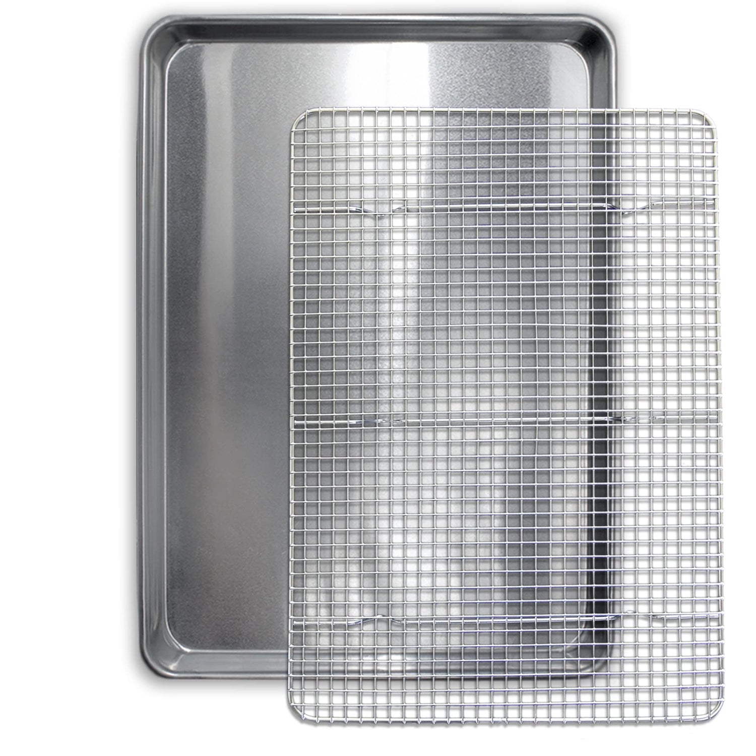 - Baking can be fun and rewarding with the right oven pan. Natural aluminum is the best conductor of heat, assuring that you have a perfectly baked product every time. No more burnt cookie bottoms! Therefore, feel like a pro when you bake that perfect biscuit, sheet cake, jelly or swiss roll, focaccia, french bread, bagel or baguette with this baking sheet and cooling rack set.