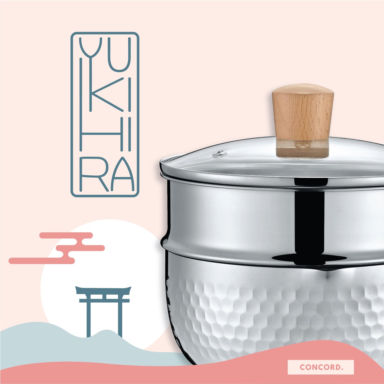 - Concord's 2 Quart Traditional Japanese Yukihira Saucepan is made with full 18/0 Stainless Steel and a solid wood handle. Now includes a removable 18/10 steamer tier and tempered glass lid.