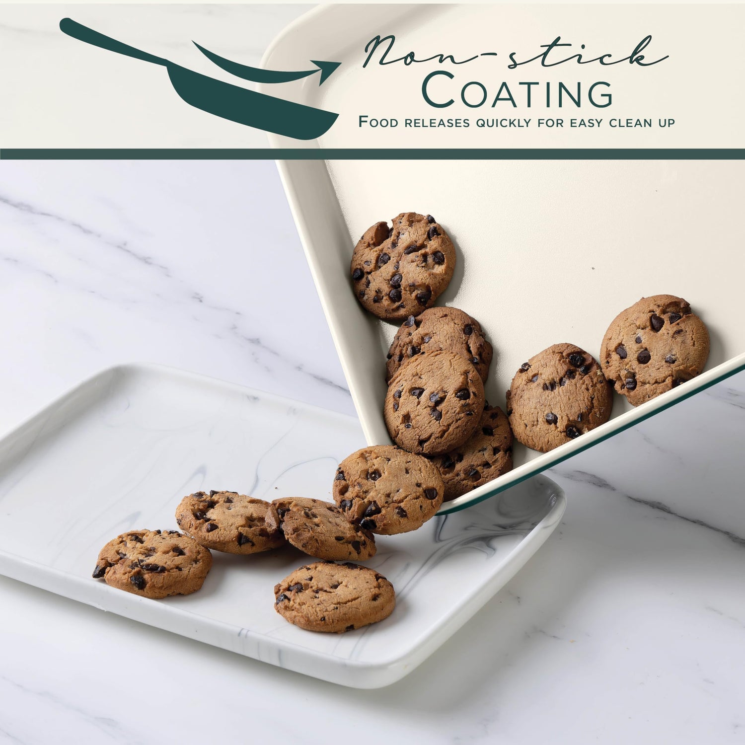 - Complete 13-Piece Set – This all-in-one bakeware collection includes cookie sheets, cake pans, a cooling rack, and durable oven mitts, providing everything you need for baking and cooking like a pro.