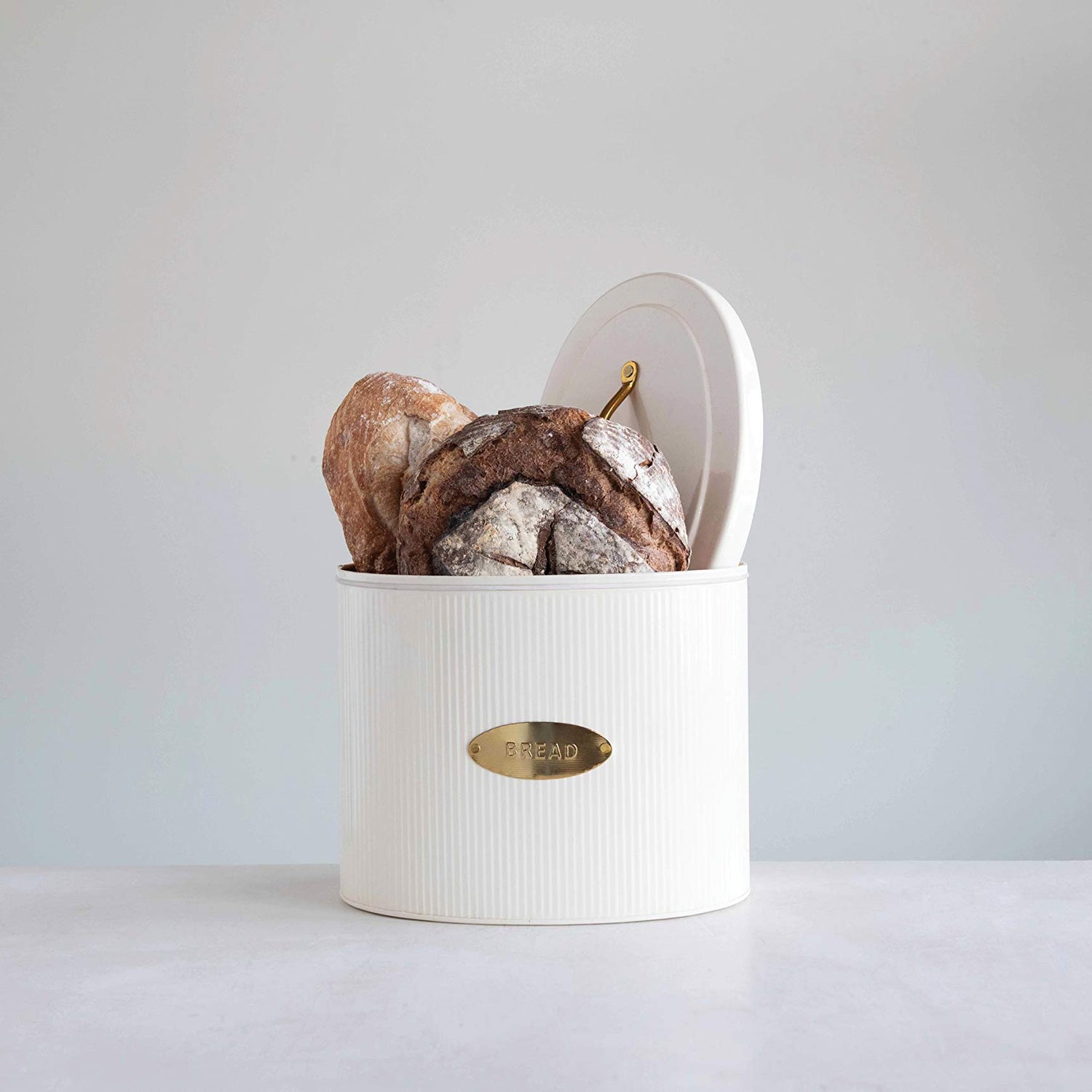 Creative Co-Op DF2516 Oval Metal Lid Bread Box, Off-White