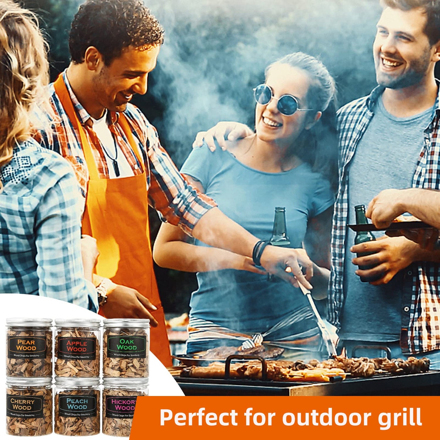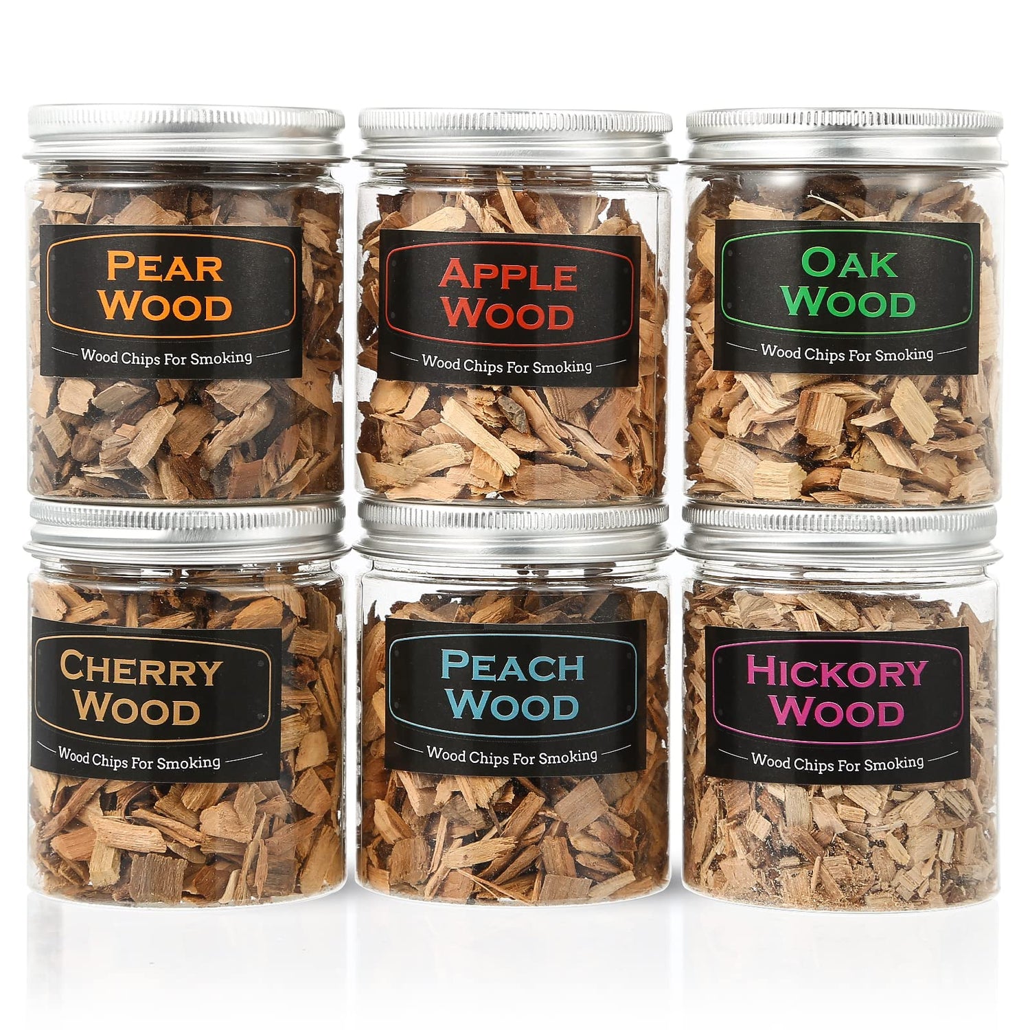 DGYJJZ 6Pack Natural Wood Chips for Smoker Grill and Smoking Gun, Oak, Pecan, Apple, Pear, Cherry and Peach About 80g Each, Smoker Woodchips for BBQ Smoking Beef Pork Chicken Fish and Whisk