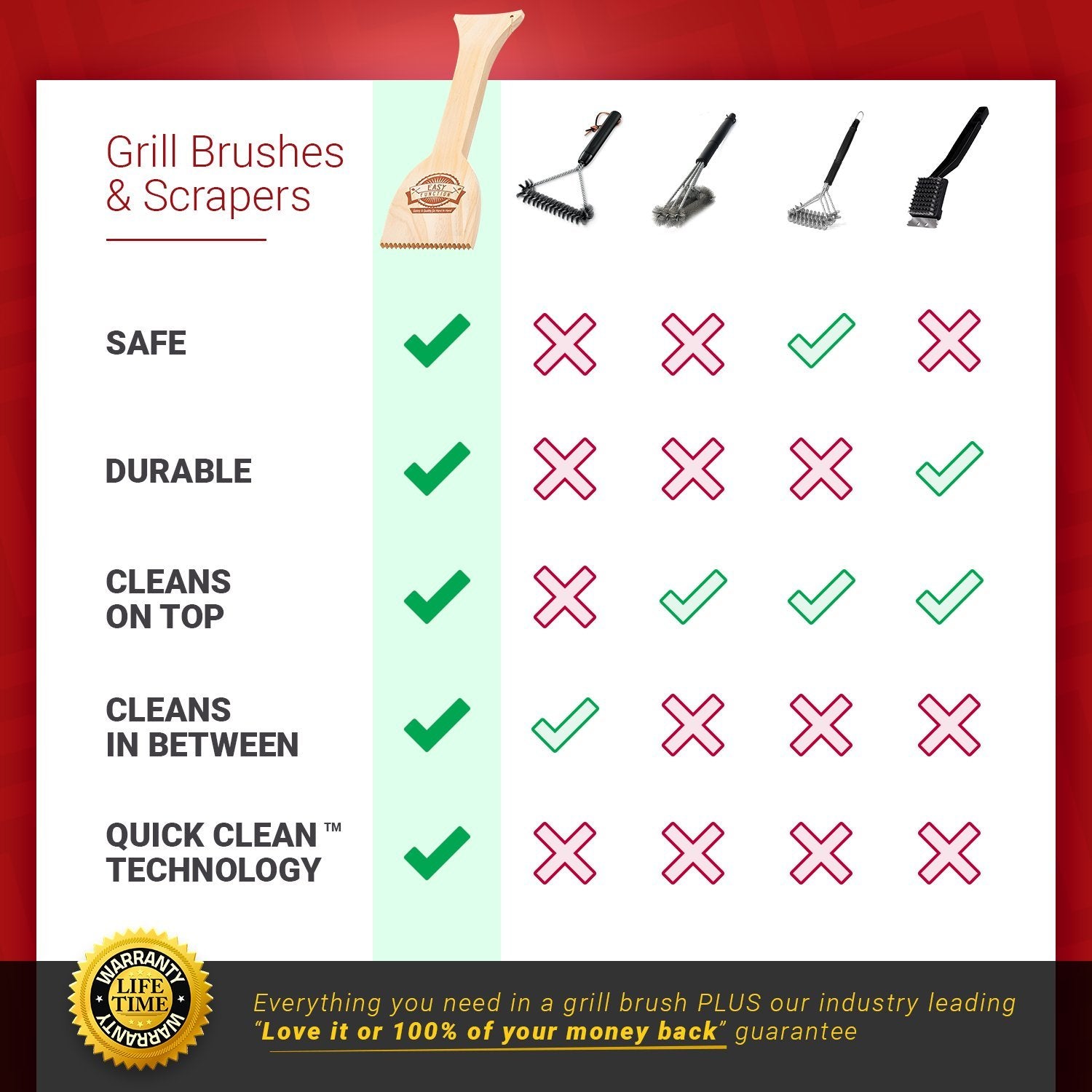 - LifeLong Promise - If anything ever happens, we'll replace your wood grill scraper for free!