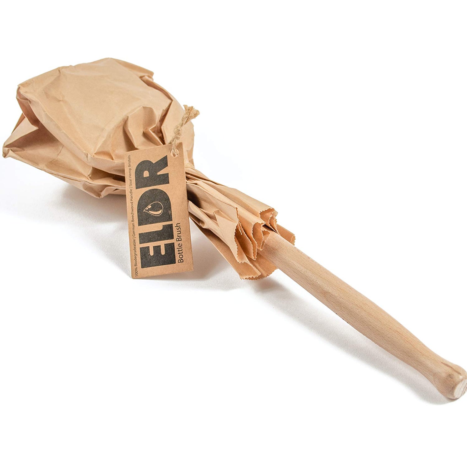 ELDR Supply Bottle Brush, 14in Extra Long German Beechwood Handle, Strong Hemp Bristles, Zero Waste, Cleans and Scrubs Hard to Reach Wide Mouth Jars, Glasses, and Tumblers