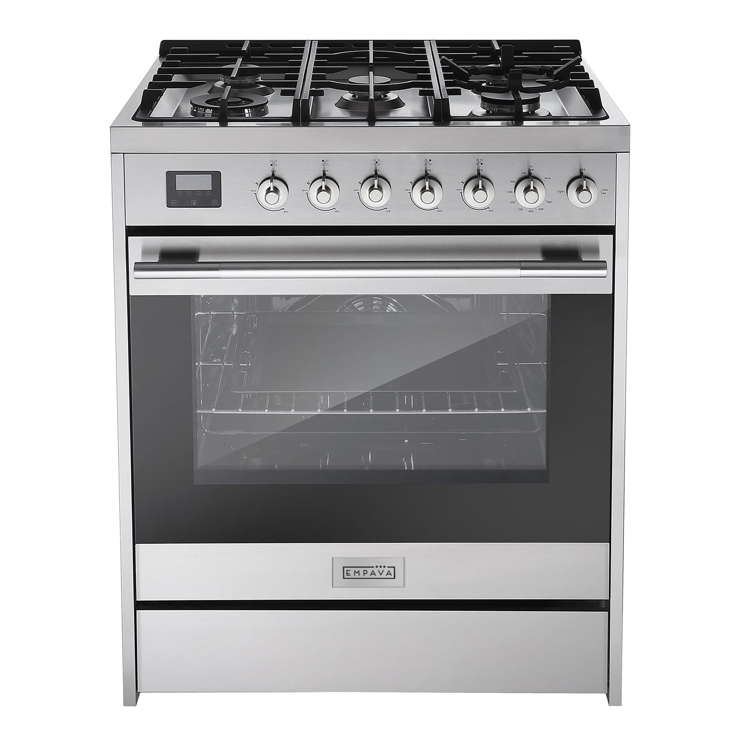 Empava Freestanding & Slide-In Gas Range, 5.0 Cu. Ft, Single Oven with 5 Sealed High-Low Burners & Touch Timer, Heavy Duty Continuous Grates in Stainless Steel, 30 Inch
