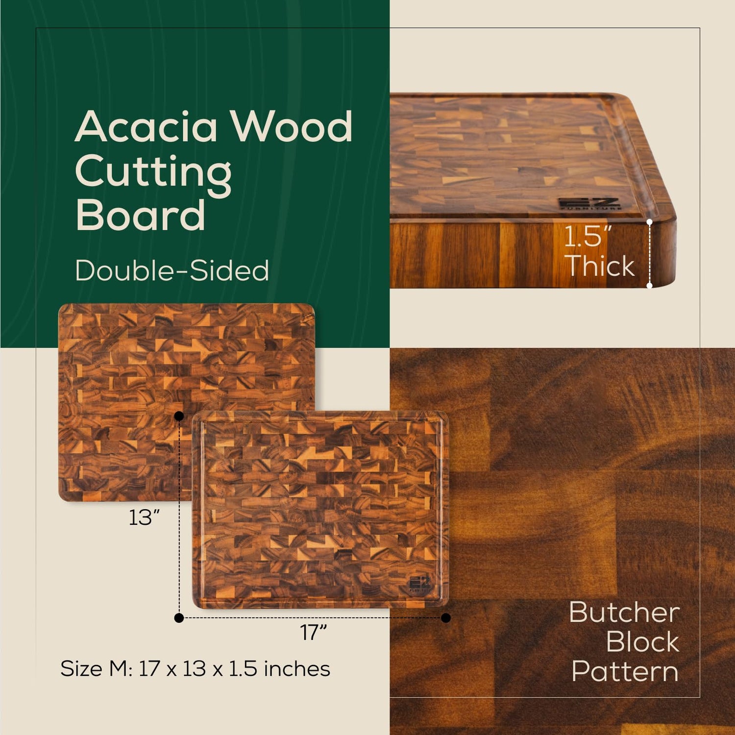 EZ FURNITURE 17 x 13 Inch Acacia Wood Cutting Board, End Grain with Juice Groove and Handles, Knife Friendly, Reversible, Suitable for Chopping Meat, Vegetables, Aesthetics for The Kitchen