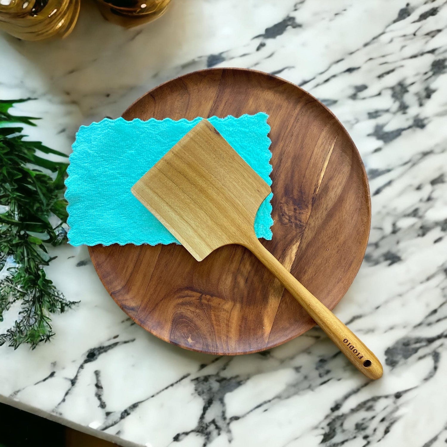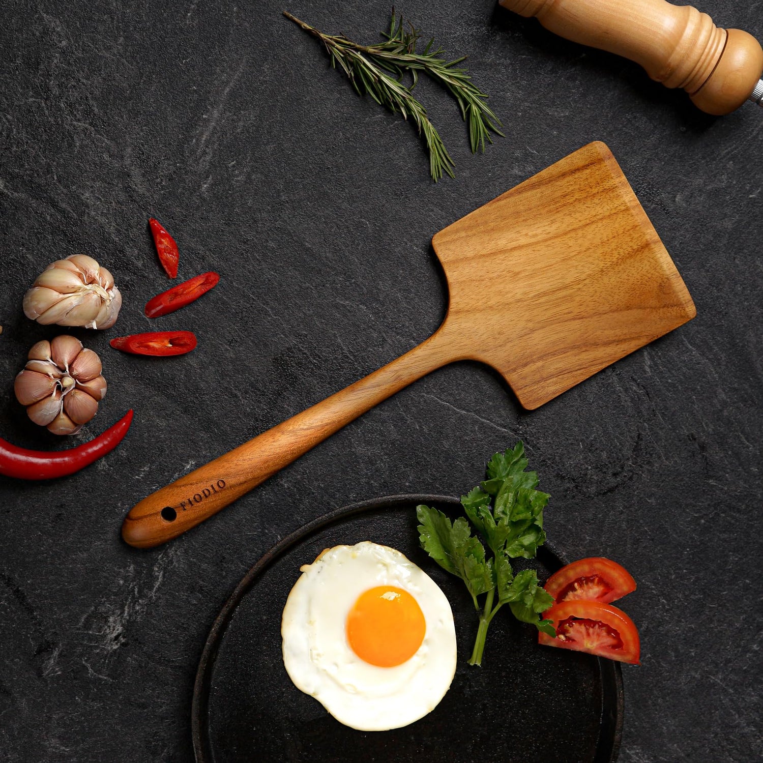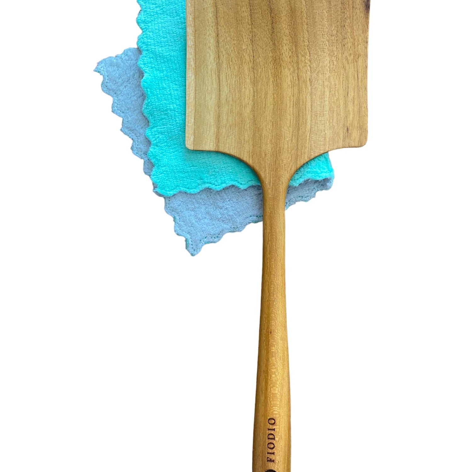 Fiodio Home Teak Wide Wooden Spatula with Microfiber Cloth - Natural Non-Stick Healthy Kitchen Utensils - Handcrafted with Comfort Grip