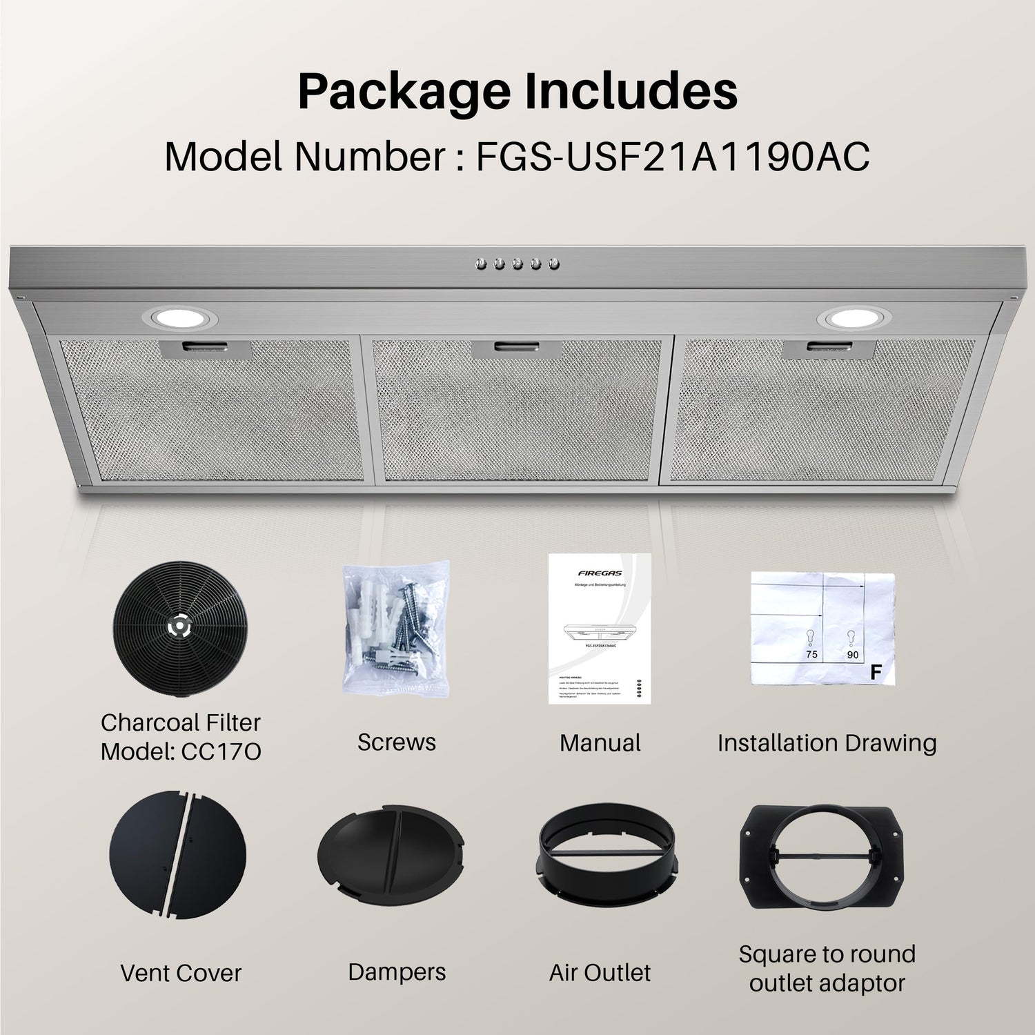 - Excellent Filtration: FIREGAS black range hood utilize 3-layer aluminum filters and a CC170 charcoal filter, ensuring that grease and odors are effectively captured and minimized. Cleaning and maintenance become hassle-free with these high-performance filters, enhancing the longevity of the range hood.