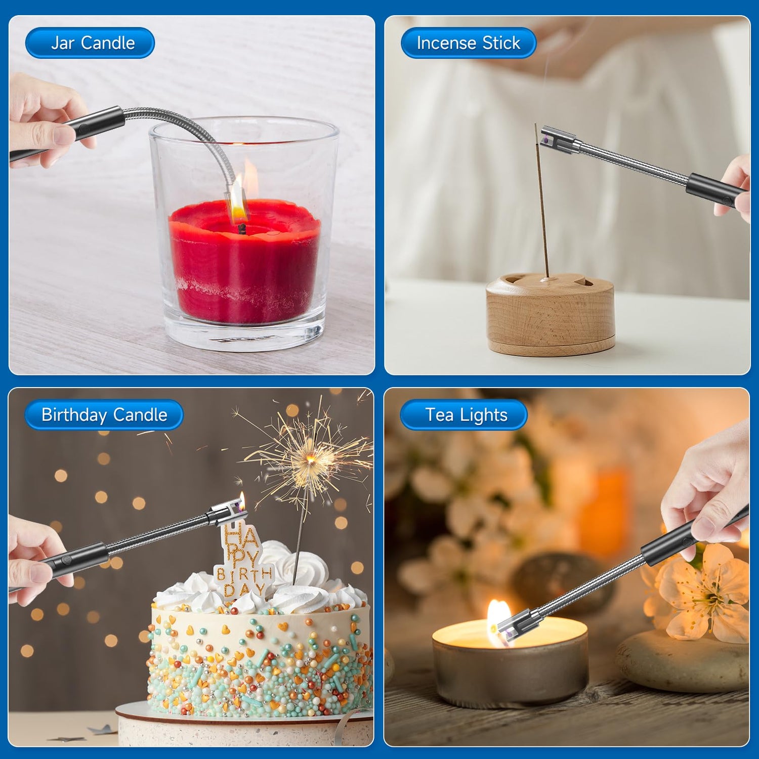 - 【Long Flexible Neck】Featuring a flexible neck that rotates 360 degrees, our electric candle lighter allows you to effortlessly reach tricky spots and light candles or grills from any angle.