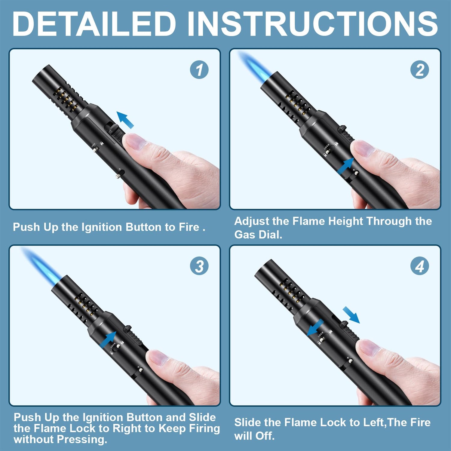 • 【NOTE】: In Order to Comply with USPS Safety Regulations, All the Butane Torch Lighter Will Not Be Filled with Butane when You Receive.