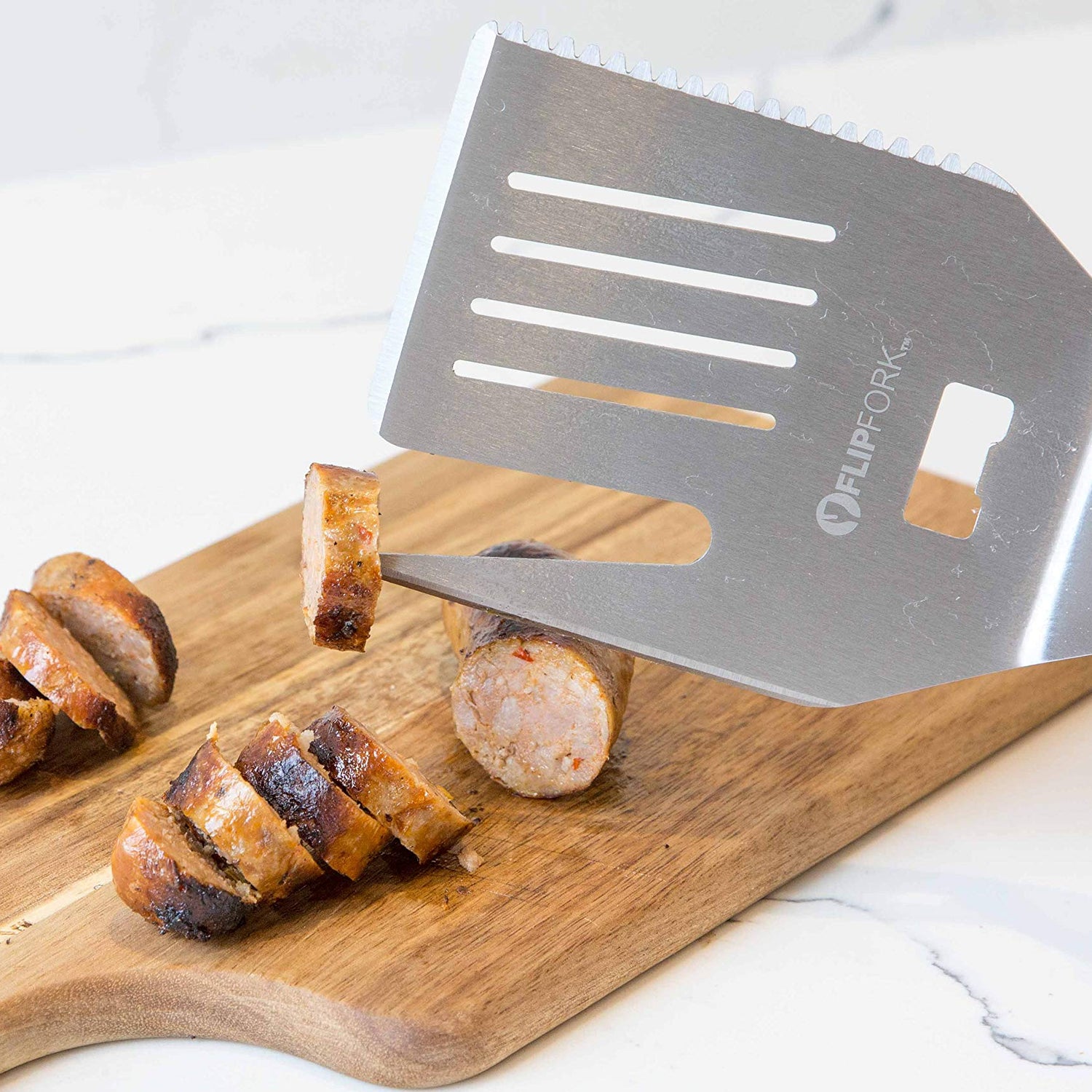 FlipFork Boss - 5 in 1 Grill Spatula with Knife, Fork, Bottle Opener and Turner BBQ Tools. All in One Grill Accessories Set for Outdoor Grills. 18 inch Grilling Accessories BBQ Set