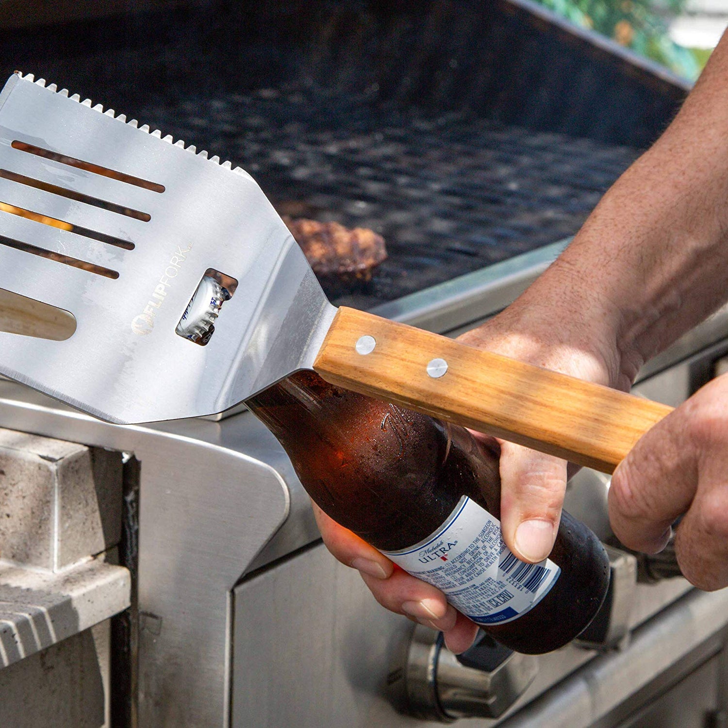 • Multi 5-in-1 Tool–Innovative Spatula features a sharp Knife-edge, Fork, Tenderizer, Bottle Opener.