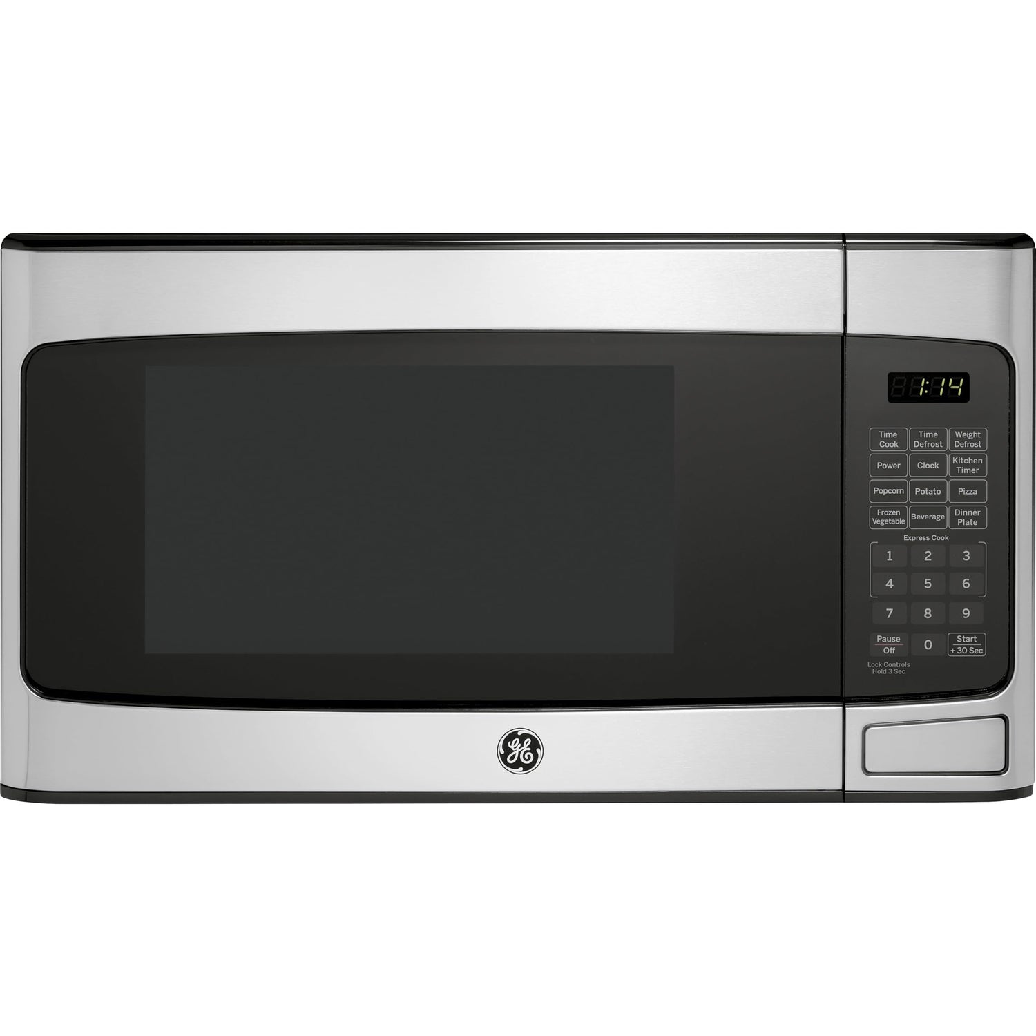 GE Countertop Microwave Oven, Compact 1.1 Cubic Ft., 950-watt Capacity, 6 Auto Cooking Settings, Child-Lock Technology, Kitchen Essentials for the Countertop, Dorm Room or Apartment, Stainless Steel