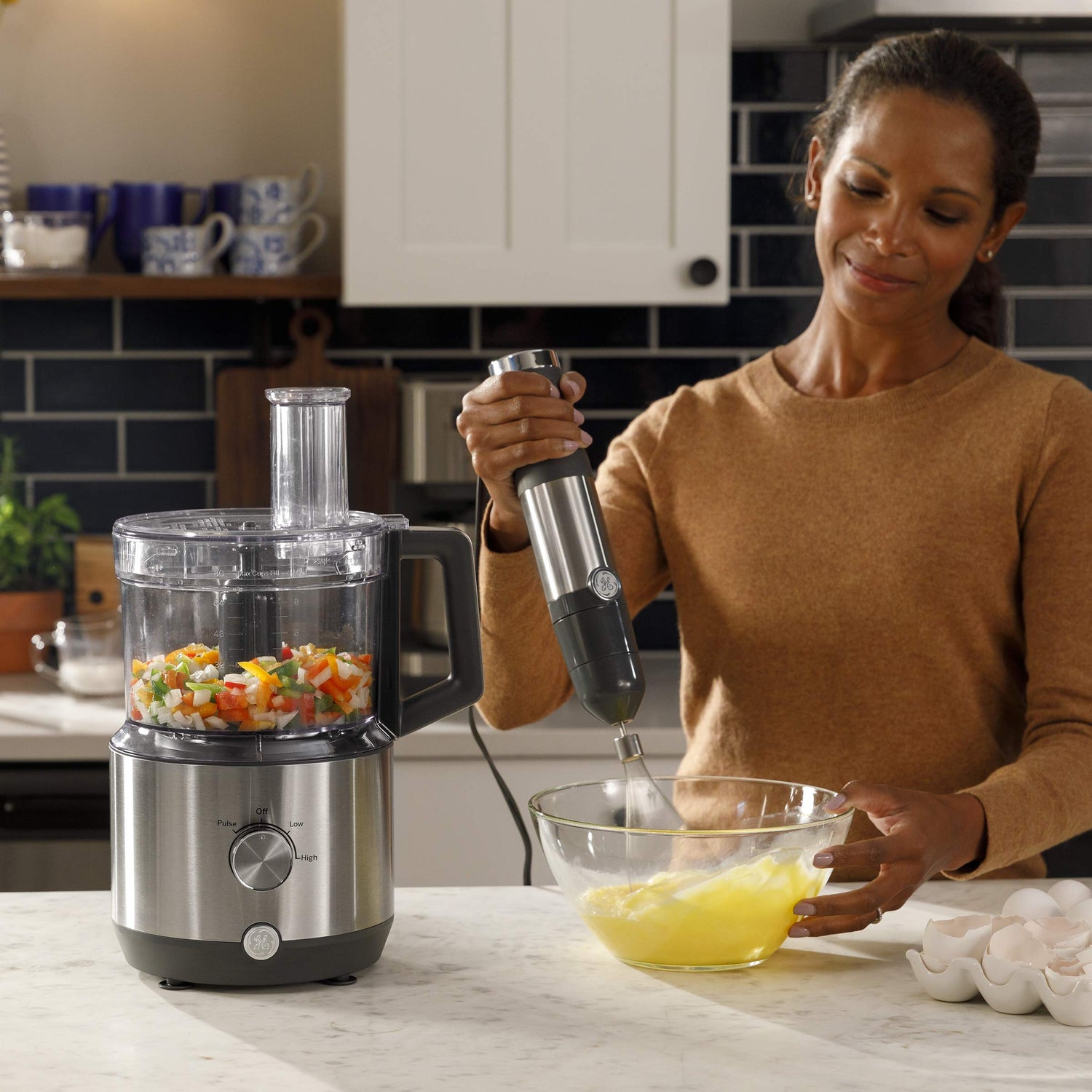 GE Immersion Blender | Handheld Blender for Shakes, Smoothies, Baby Food & More | Includes Whisk & Blending Jar | 2-Speed | Interchangeable Attachment for Easy Clean | 500 Watts | Stainless Steel