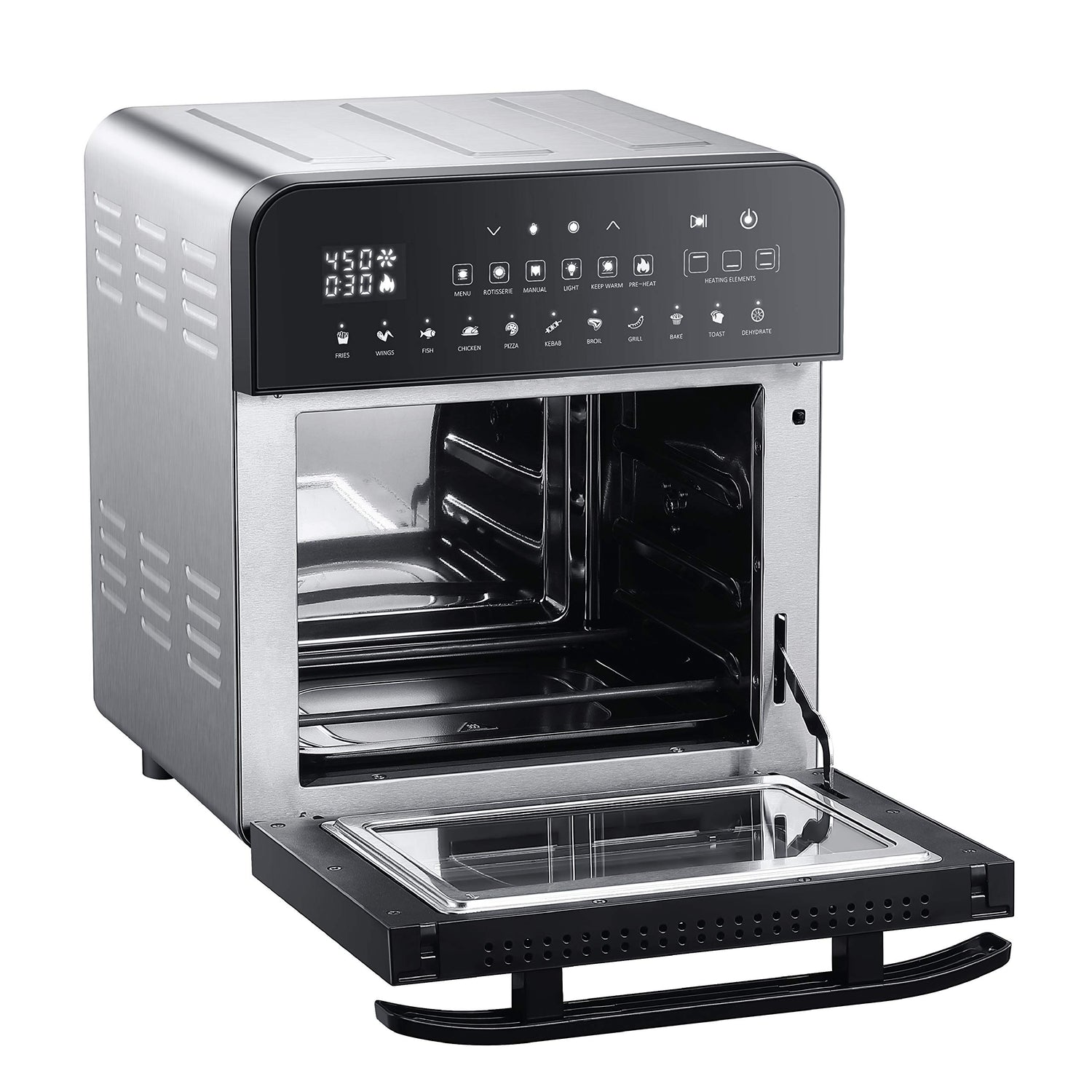 GoWISE USA 14.7-Quart Air Fryer Grill with Dual Heating Elements & Oven with Rotisserie, Dehydrator, Preheat and Broil Functions + 11 Accessories with 2 Recipe Books (Stainless Steel/Black), Ultimate