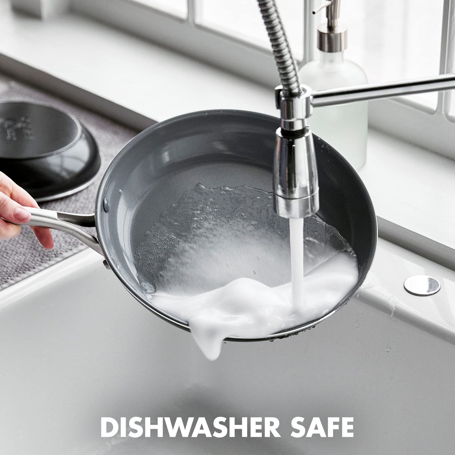 GreenPan Swift Healthy Ceramic Nonstick, 8" and 10" Frying Pan Skillet Set, Stainless Steel Handles, PFAS-Free, Dishwasher Safe, Oven Safe, Black