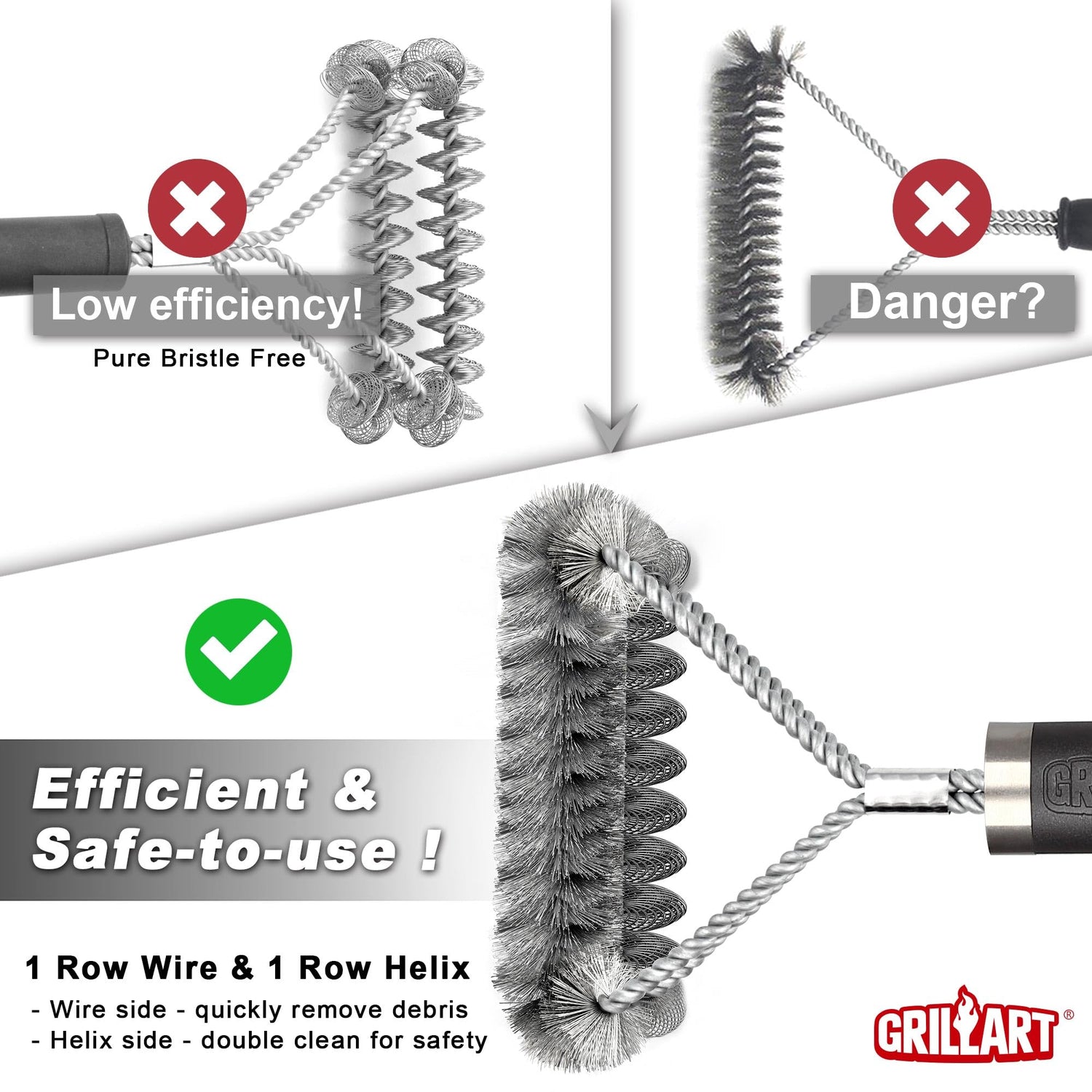 GRILLART Grill Brush [Helix + Wire] Combined BBQ Brush - Safe & Efficient Grill Cleaning Brush - 18" Grill Cleaner Brush Scrubber for Gas/Porcelain/Charbroil Grates – BBQ Accessories Gifts for Men/Dad