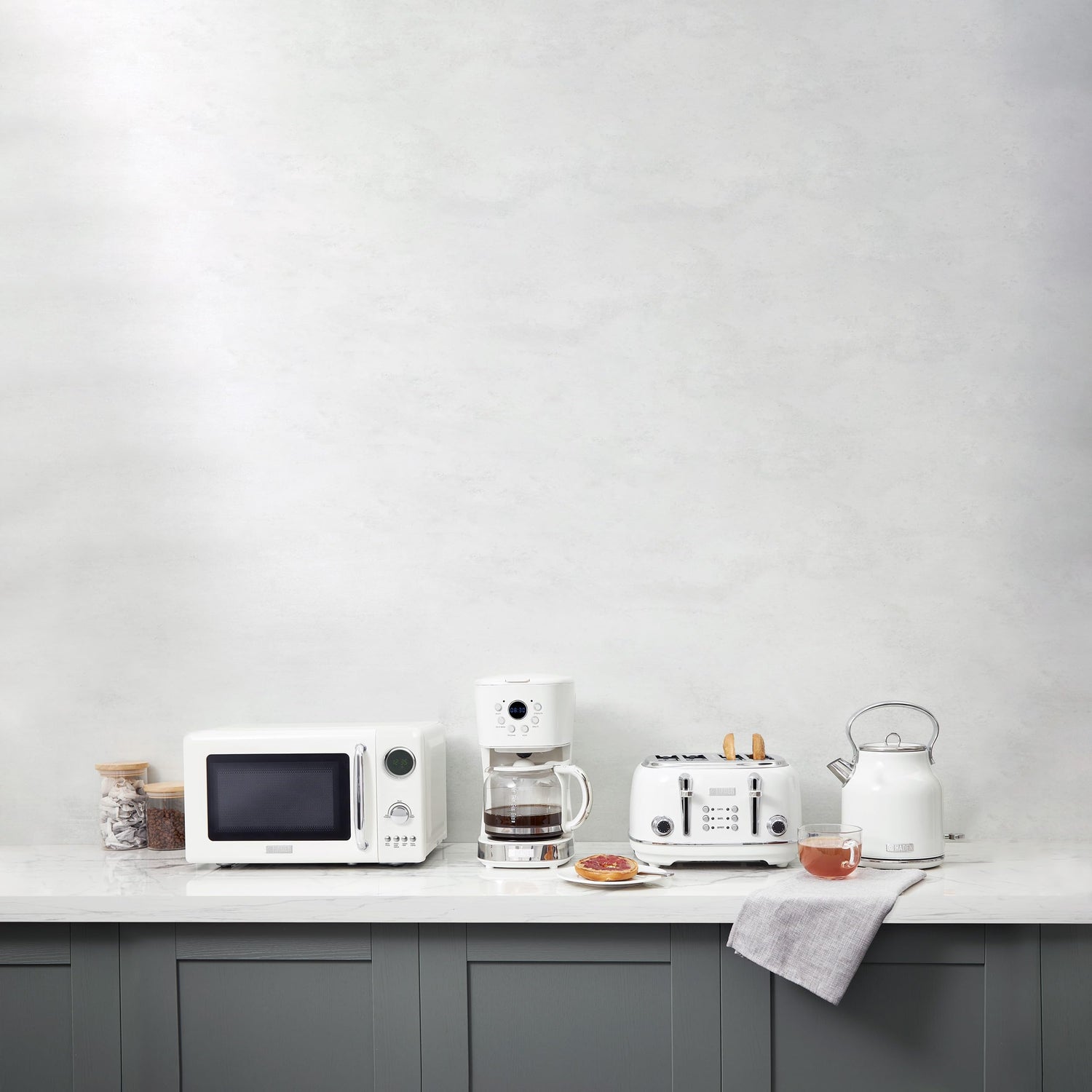 Haden 700 Watt 0.7 Cubic Foot Microwave Oven with Digital Controls, Defrost, and Instant Start Countertop Small Appliance, Ivory/Chrome
