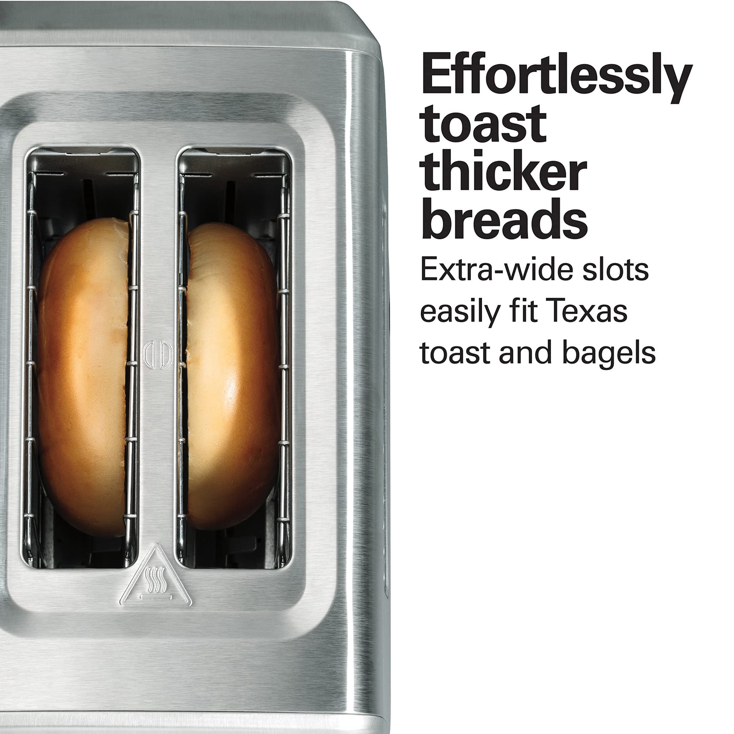 Hamilton Beach 2 Slice Toaster with Extra-Wide Slots, Bagel Setting, Toast Boost, Slide-Out Crumb Tray, Auto-Shutoff & Cancel Button, Defrost Function, Stainless Steel (22794)