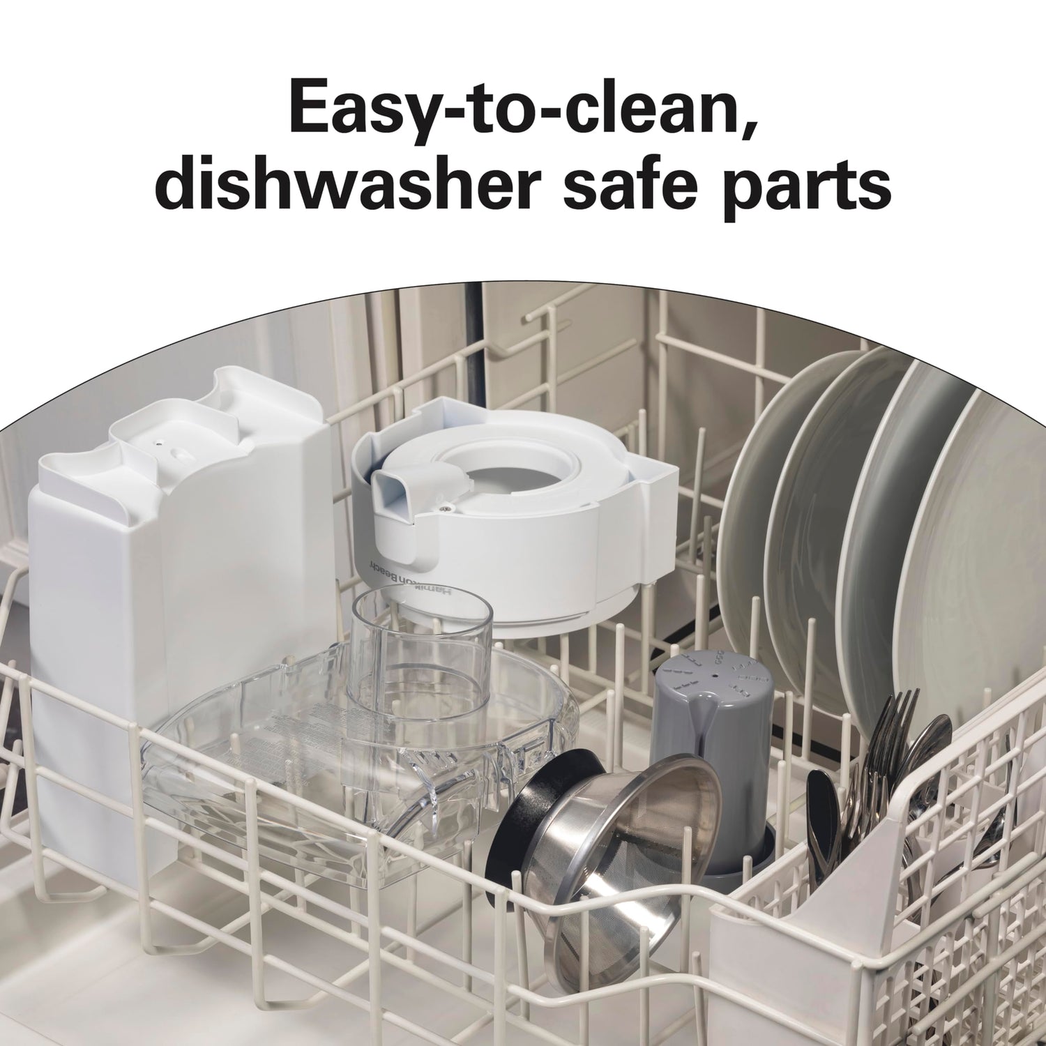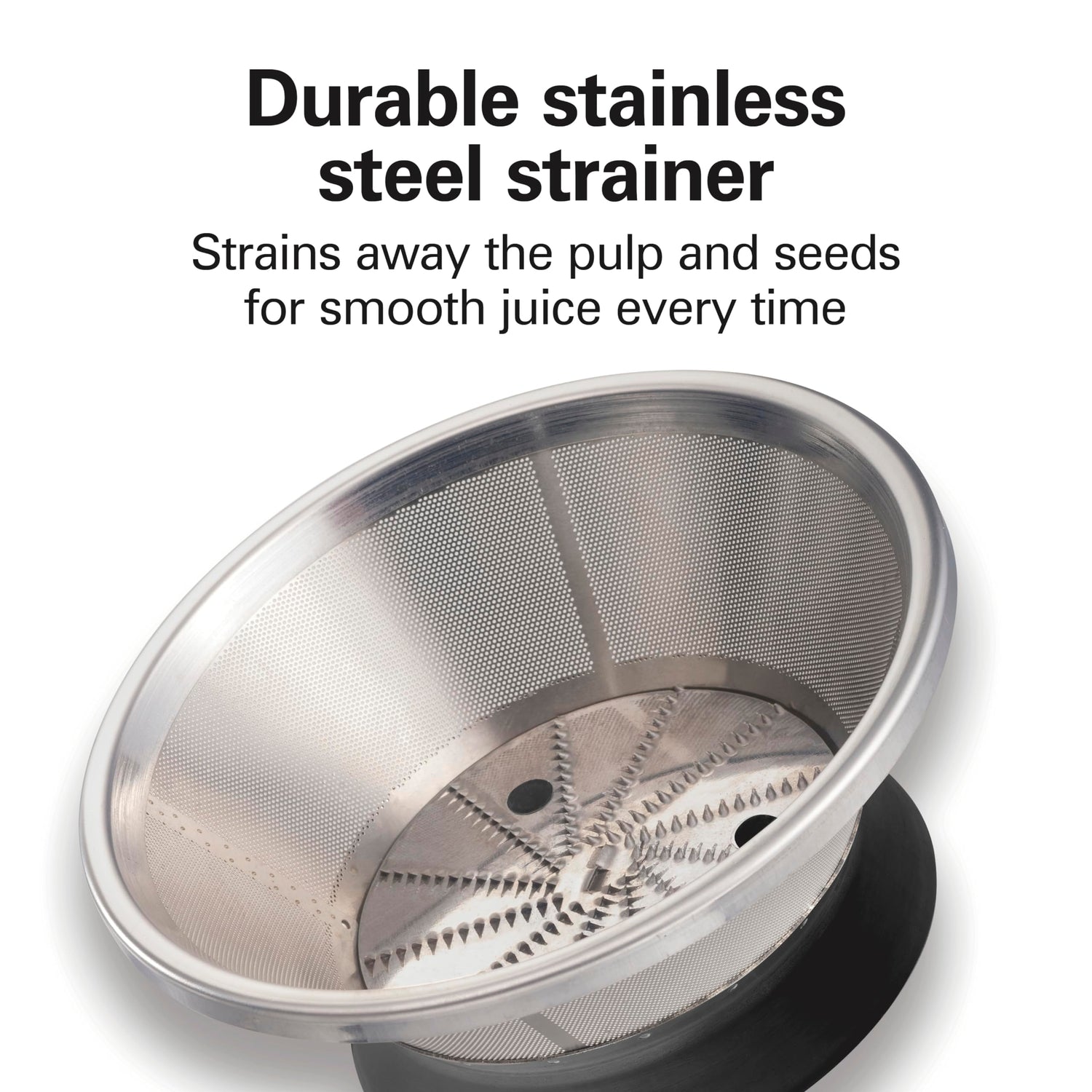 Details: The Hamilton Beach® HealthSmart® Compact Juice Extractor makes fresh, healthy juice in seconds. The large chute reduces precutting by 50%** to save prep time and the compact design saves space. Includes dishwasher safe parts for easy cleanup.