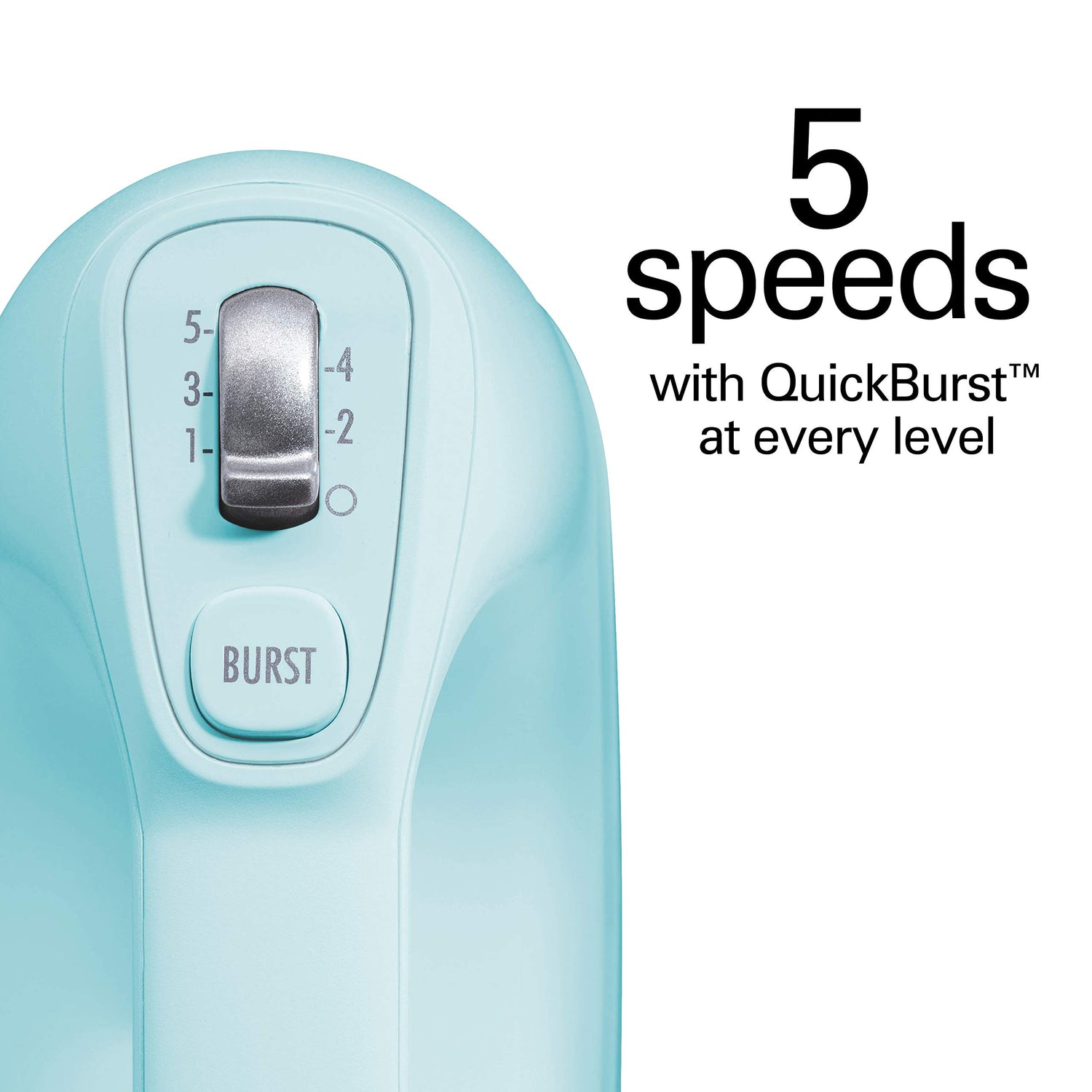 Hamilton Beach Professional 5-Speed Electric Hand Mixer with Snap-On Storage Case, QuickBurst, Stainless Steel Twisted Wire Beaters and Whisk, Mint (62658)
