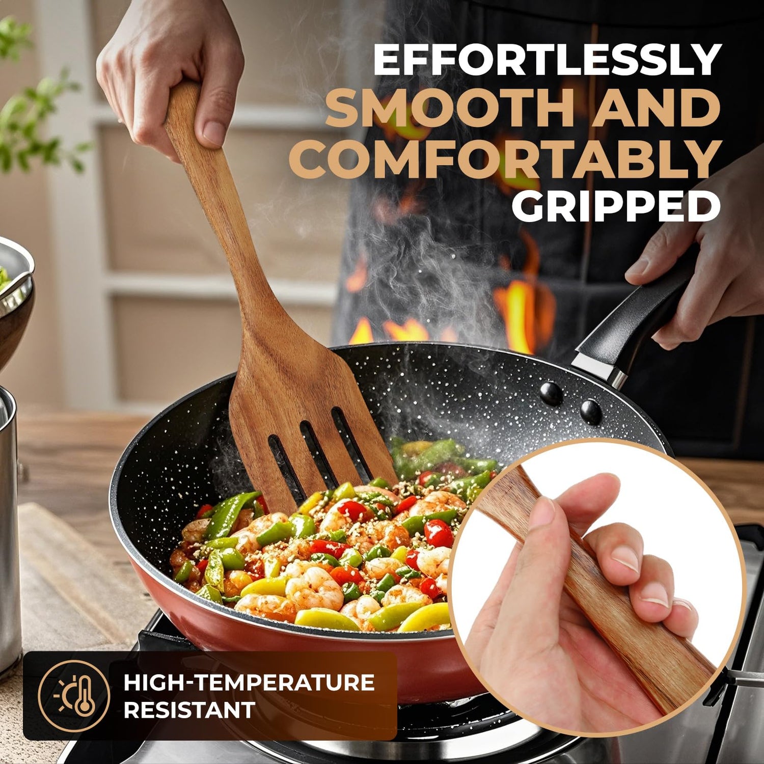 - 【Versatile Cooking Tools】This Wooden Spatula for Cooking Set includes a slotted spatula, flat spatula, solid spatula, and a wood flipper, making it perfect for a variety of cooking tasks—from flipping pancakes to stir-fry vegetables.
