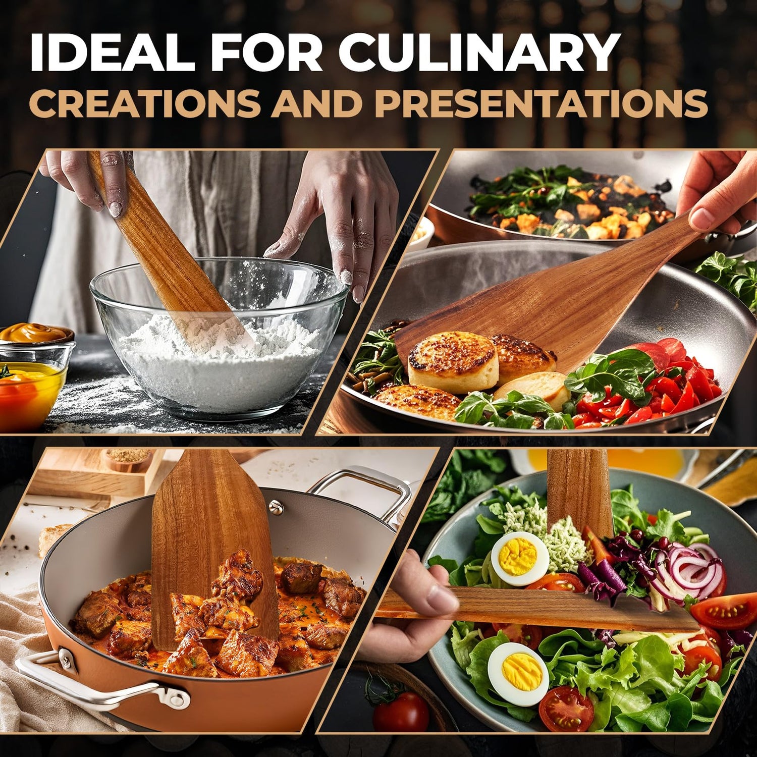 - 【Premium Teak Wood Construction】Crafted from high-quality teak wood, our Teak Wood Spatula Set is designed for durability and longevity, ensuring that each utensil withstands the rigors of daily cooking.