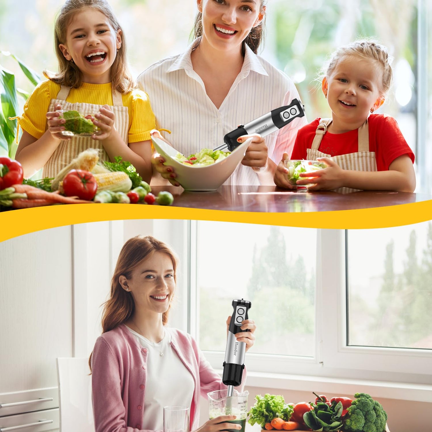 • 【Sufficient Power】Handor hand blender is equipped with a high performance 1000W motor and stainless steel blades, which is durable and ideal for efficiently chopping hard ingredients such as nuts and meat, reducing food preparation time.