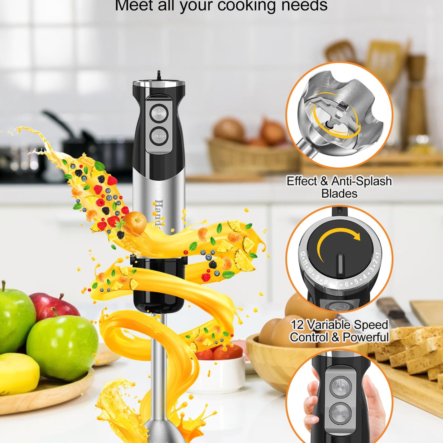 • 【12-Speed Adjustable】Professional 12-speed variable speed hand blenders, you can easily adjust the speed and power according to different foods. The TURBO button instantly reaches maximum power for better results.