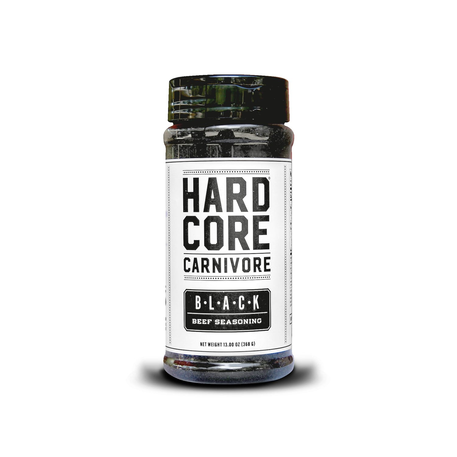 Hardcore Carnivore Black: charcoal seasoning for steak, beef and BBQ (Large Shaker)