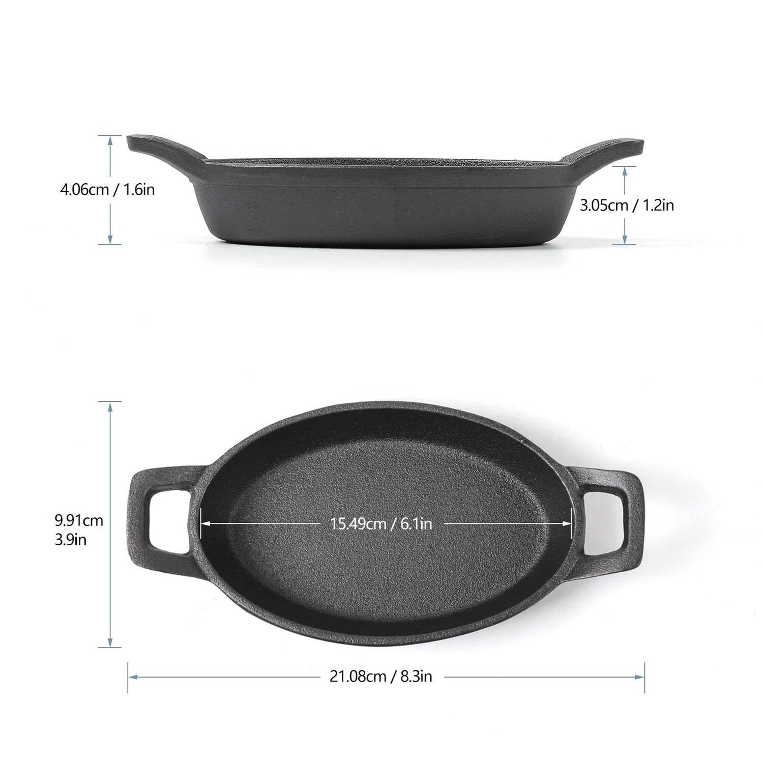 HAWOK Cast Iron Mini Oval Serving Dishes with a Storage Bag, Oval-shaped Casserole Dishes, 4 PCS