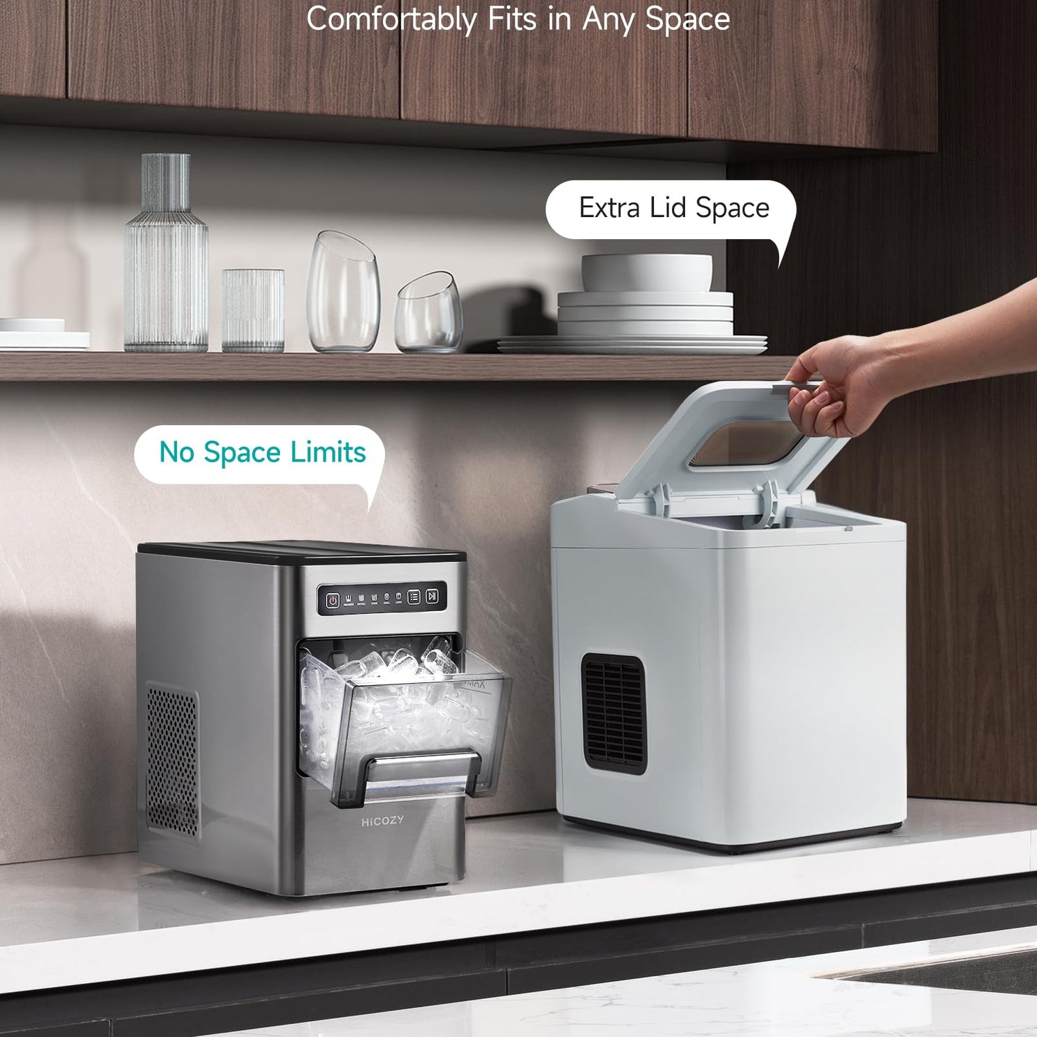 • Space-Saving Design: Unlike other ice makers that need extra space for their basket lids, the HiCOZY Bullet Ice Maker features the industry’s first pull-out basket. Our space-saving design allows this compact machine to comfortably fit anywhere, even under cabinets, enabling convenient ice indulgence anytime, anywhere.
