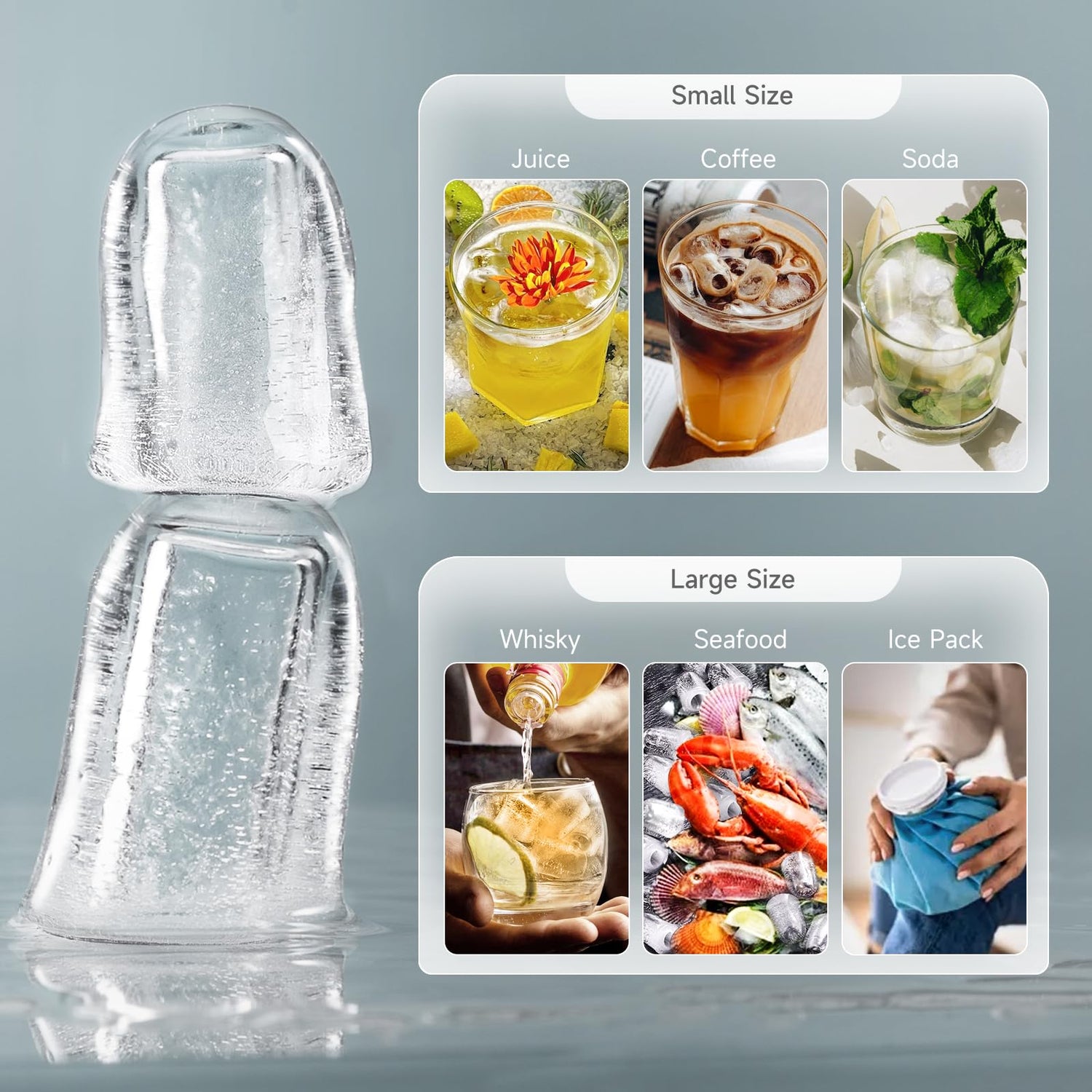 • Ice in 6 Minutes & 2 Ice Sizes: HiCOZY’s highly-efficient condensing system starts producing ice in just 6 minutes and can make up to 24 lbs of ice per day. It can make ice in 2 sizes: large ice that for a longer-lasting chill, and small ice that rapidly cools drinks for a quick refresh.
