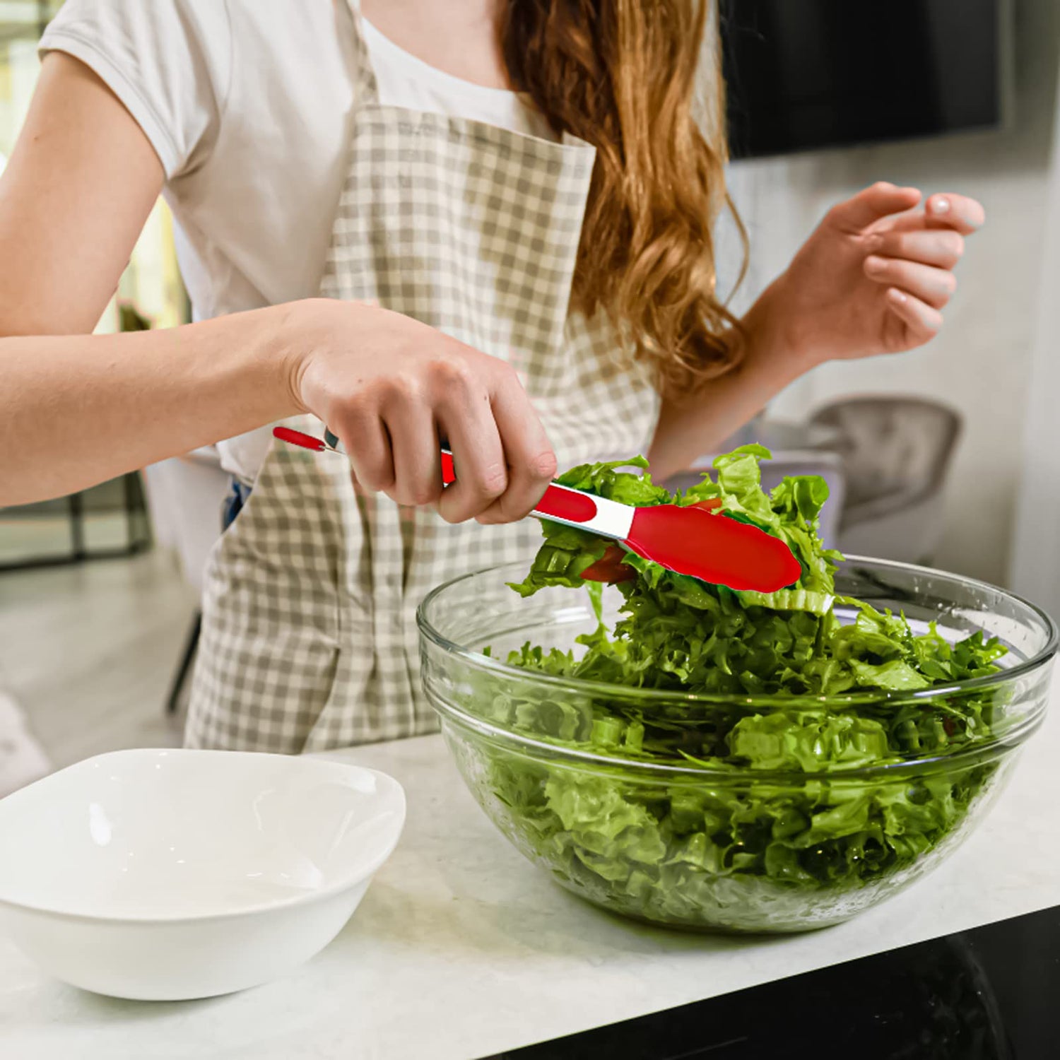• HIGH QUALITY SILICONE: We use the highest quality food-grade silicone for the cooking tong tips, which won't scratch your cookware. It has passed the safety test, and able to resist up to 480°F of heat. Easy to clean and dishwasher safe.