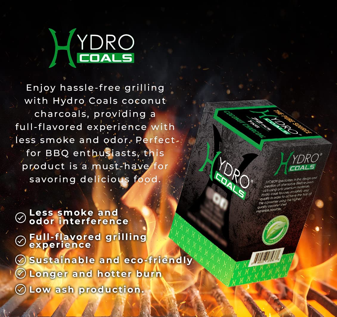 - Hydro Coconut Charcoal - Ultimate Grilling & BBQ Experience with Cubes Made of Coconut Shell, Long-Lasting Odorless Charcoal - (1 KG)