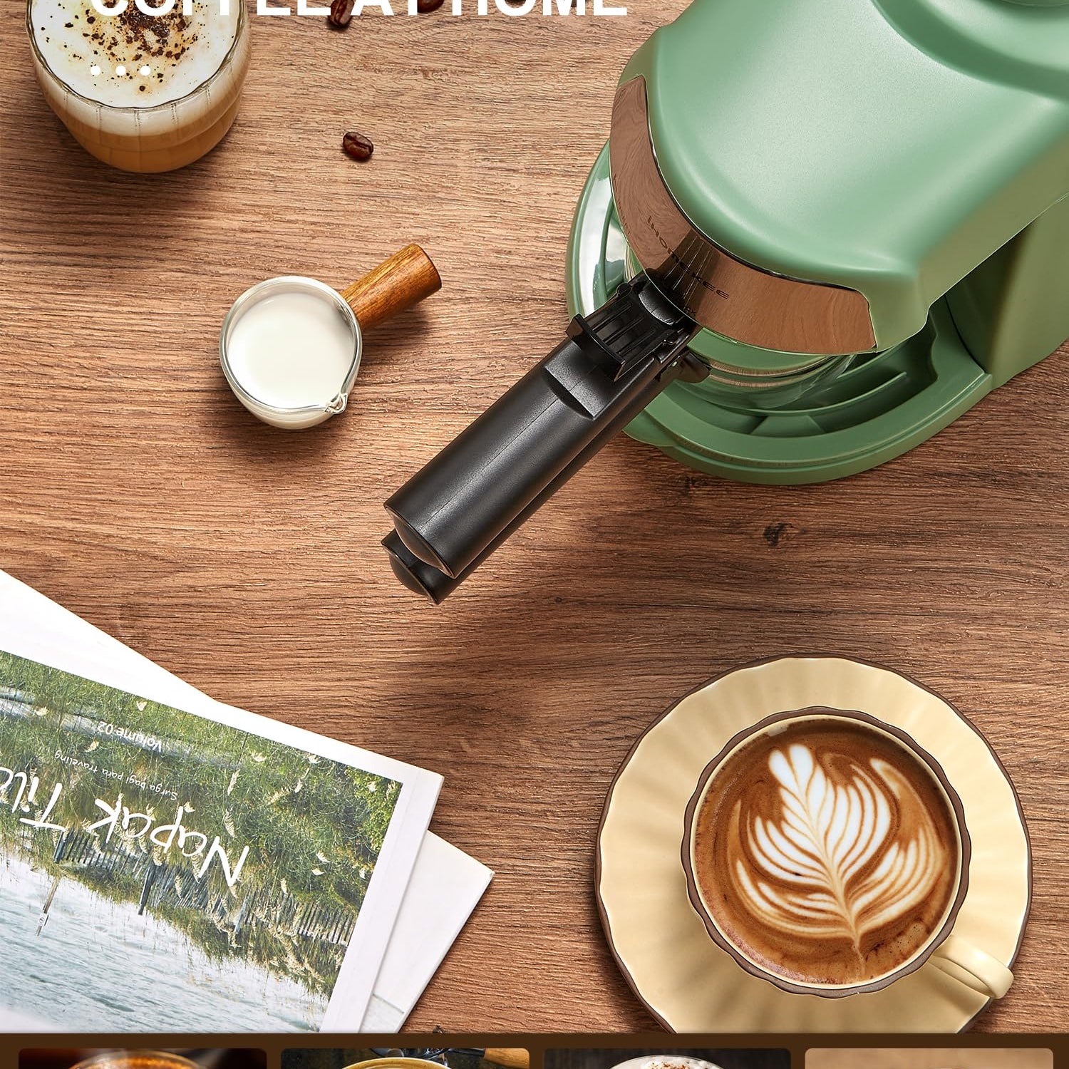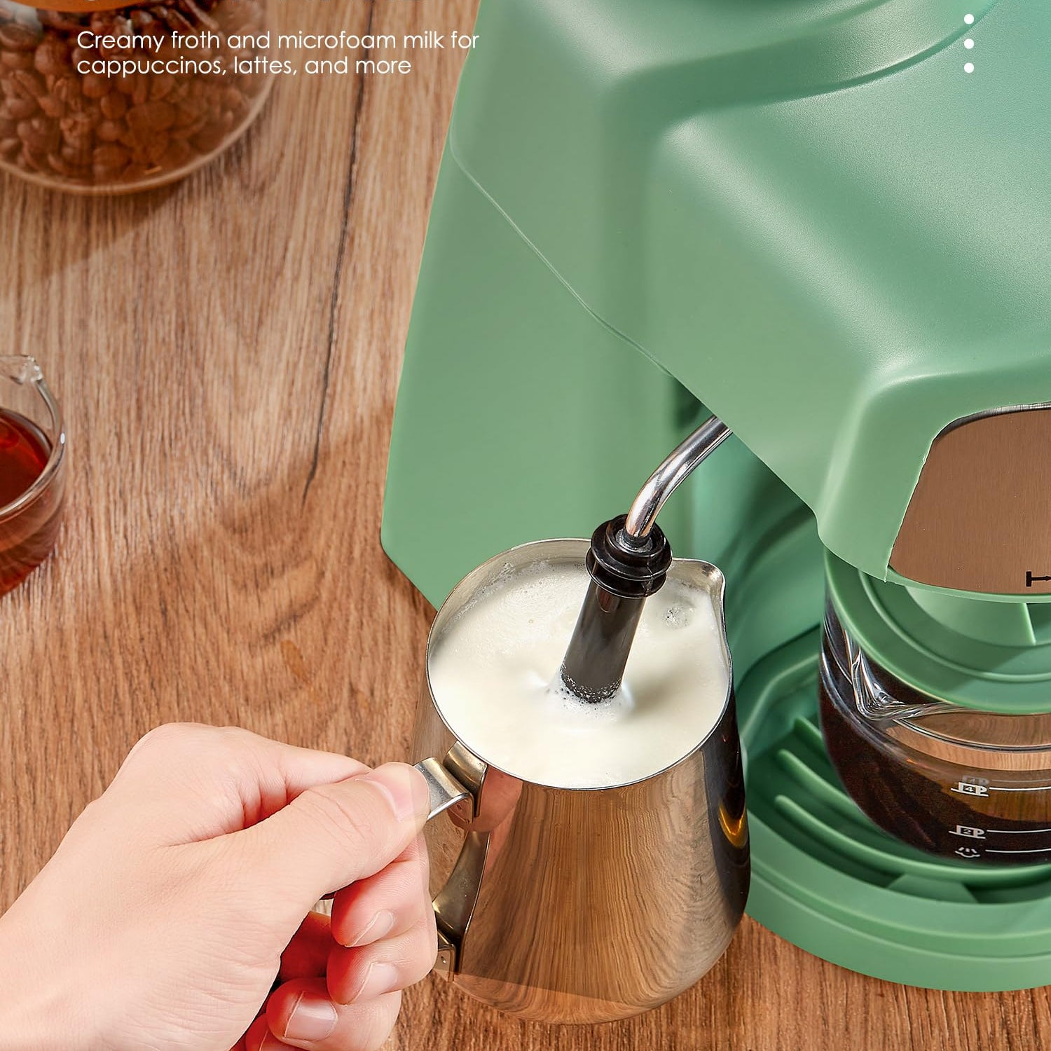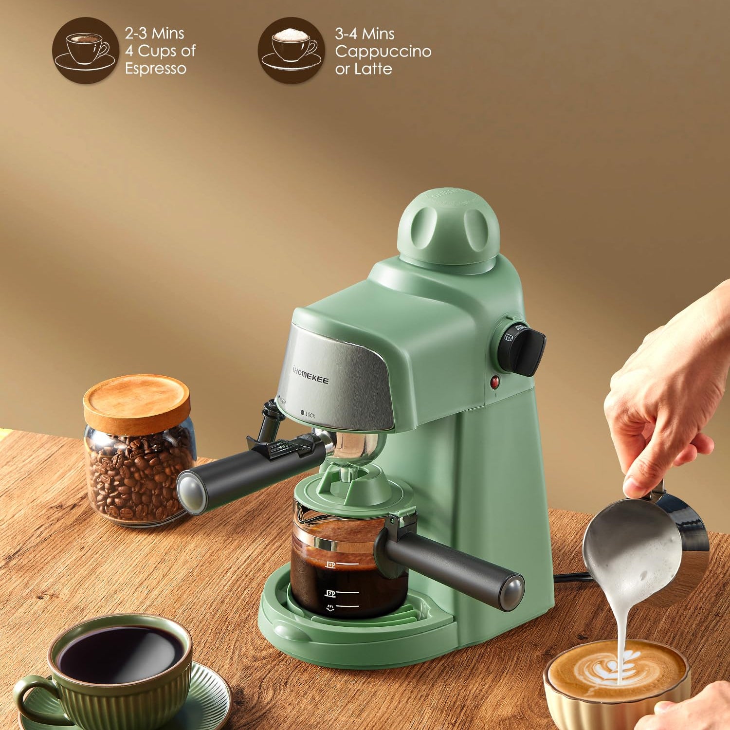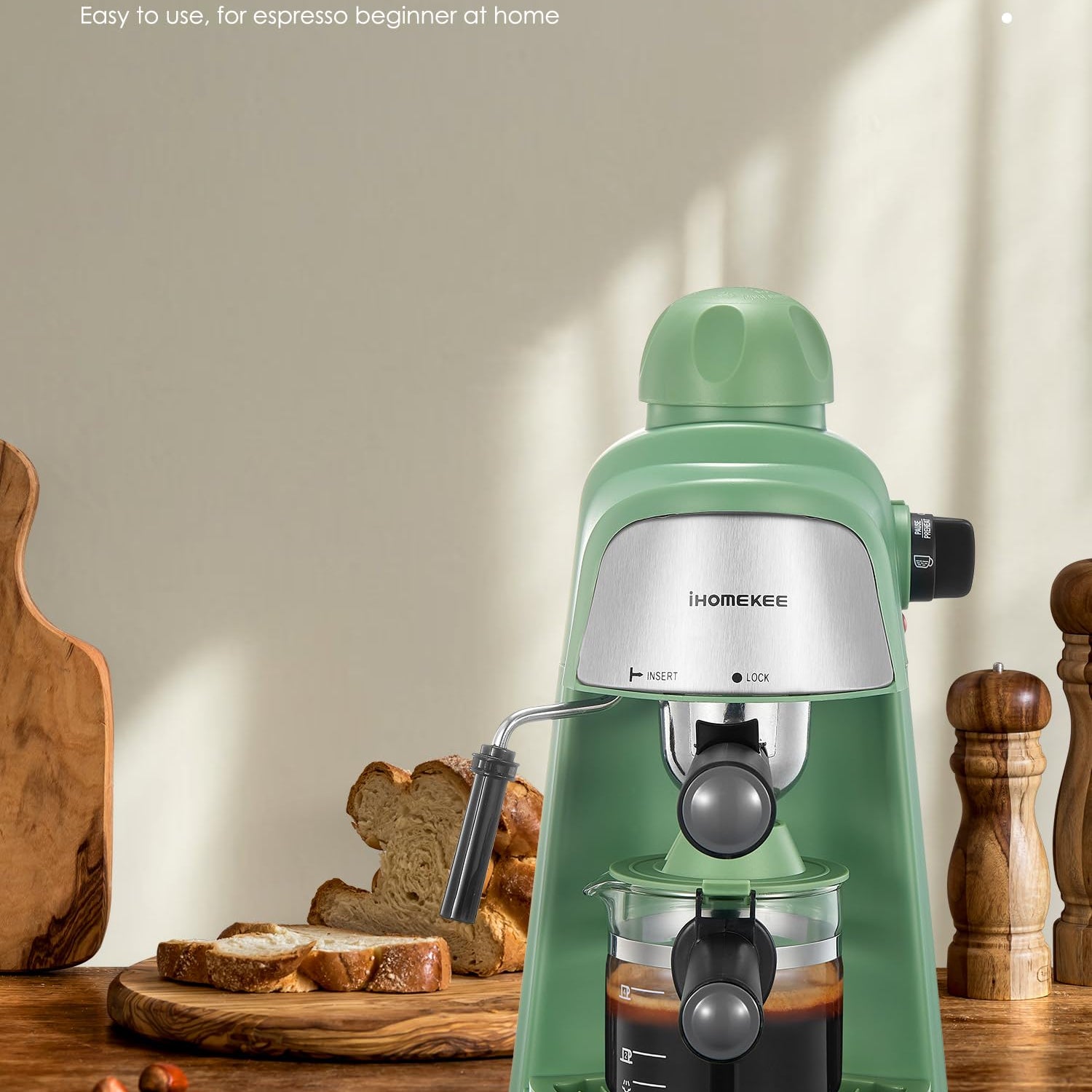 Ihomekee Espresso Machine, 3.5Bar Espresso and Cappuccino Machine with Fast Heating Function, 1-4 Cups Coffee Maker with Milk Frothing Function and Steam Wand (Green)