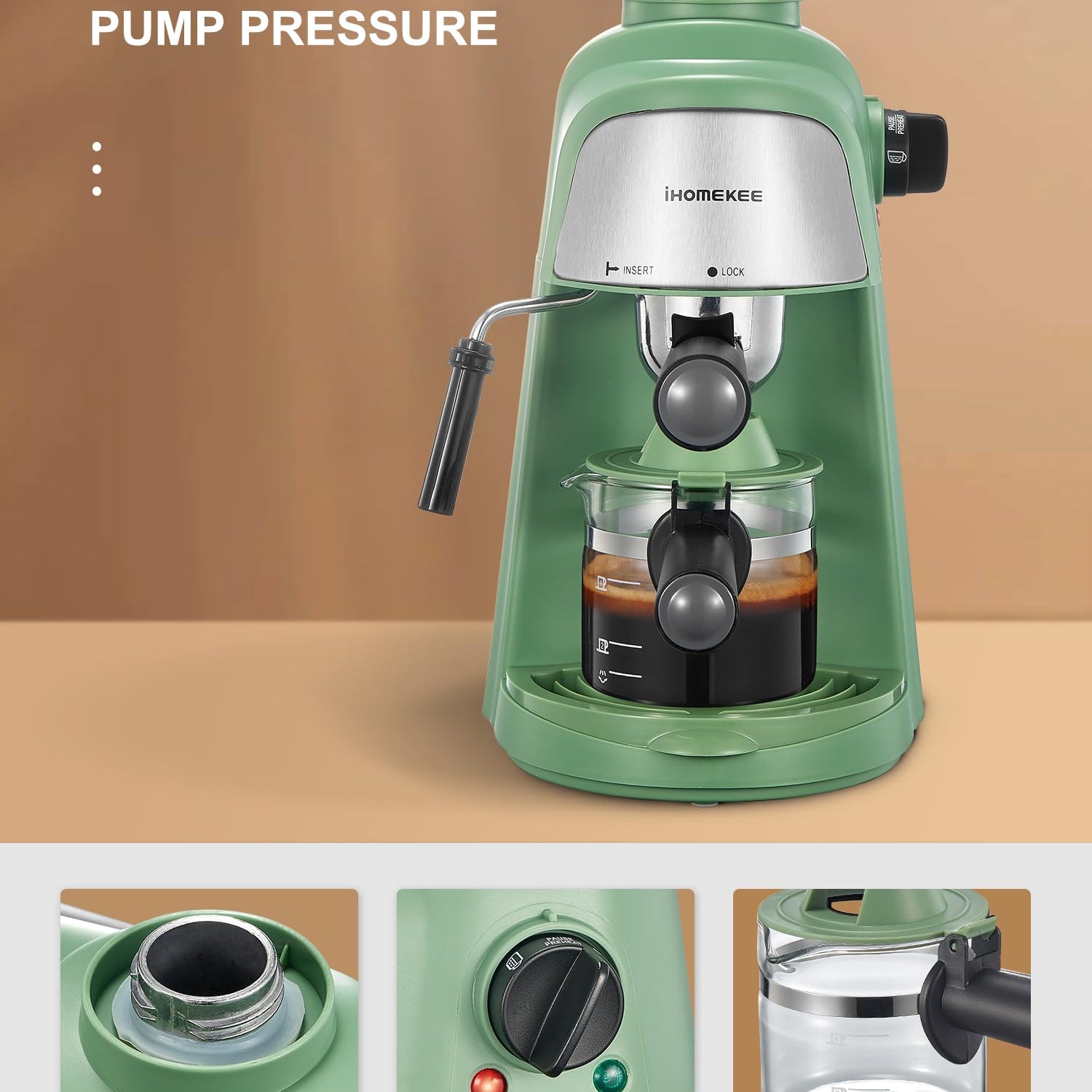 - FAST HEATING FUNCTION: The Ihomekee espresso machine comes with a fast heating in 90 second that provides the optimum extraction temperature for your coffee, while having spare hot water to brew your coffee when you need it, without waiting.