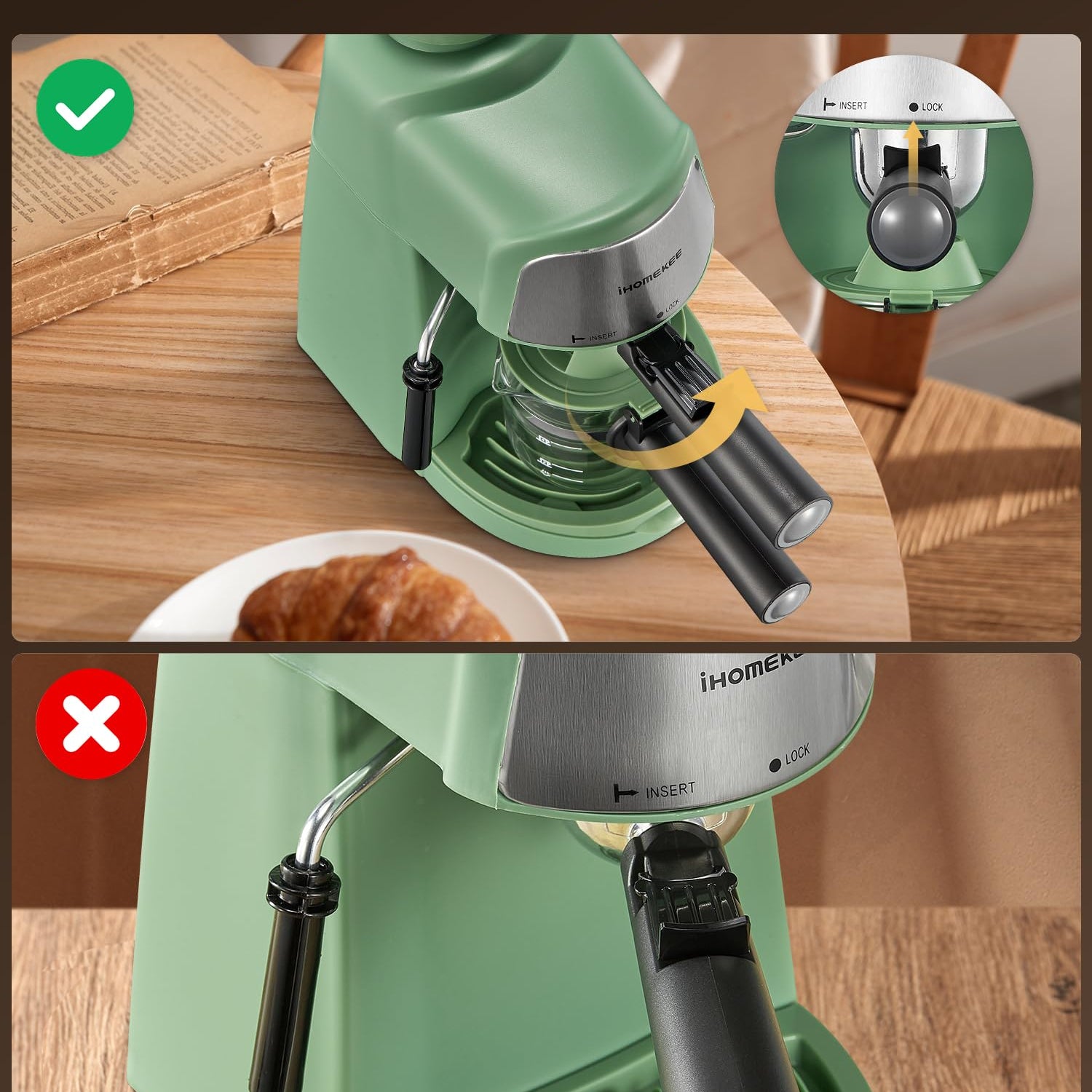 - TIPS: When installing filter holder, its handle must be aligned at lock position to ensure it’s locked tight. To ensure maximum flavor, Please use medium-coarse coffee ground.If you have any questions, please feel free to contact us and we will reply within 12 hours.