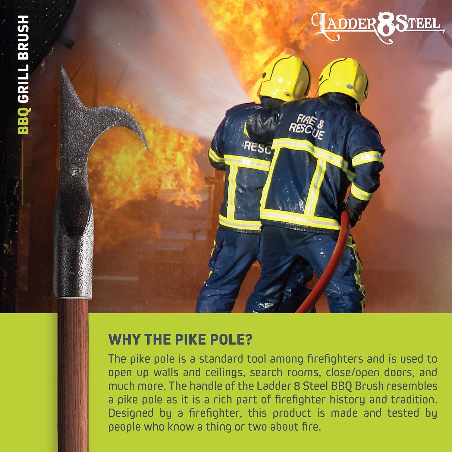 Jolly Green Products Heavy Duty Pike Pole Grill Brush Designed by Firefighter | Grill Brush for Outdoor Grill | BBQ Grill Brush | Best Grill Brush | Gas Grill Brush | BBQ Gifts for Men