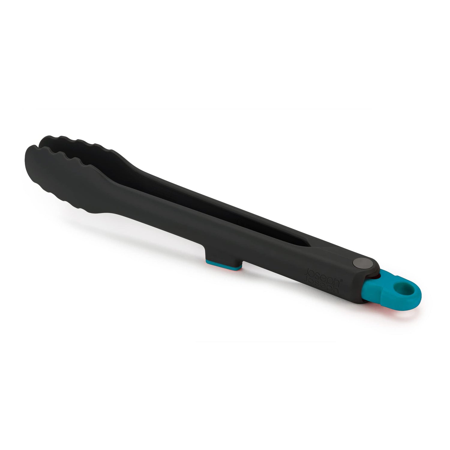 Details: Designed with lockable arms for ease of storage, these grey tongs from the Joseph Joseph Duo collection are complete with an integrated tool rest that features non-slip feet, allowing to keep the tongs rested above the work surface improving hygiene and reducing mess. Crafted using glass-filled nylon, these tongs can be used with your non-stick cookware without worry of leaving scratches.