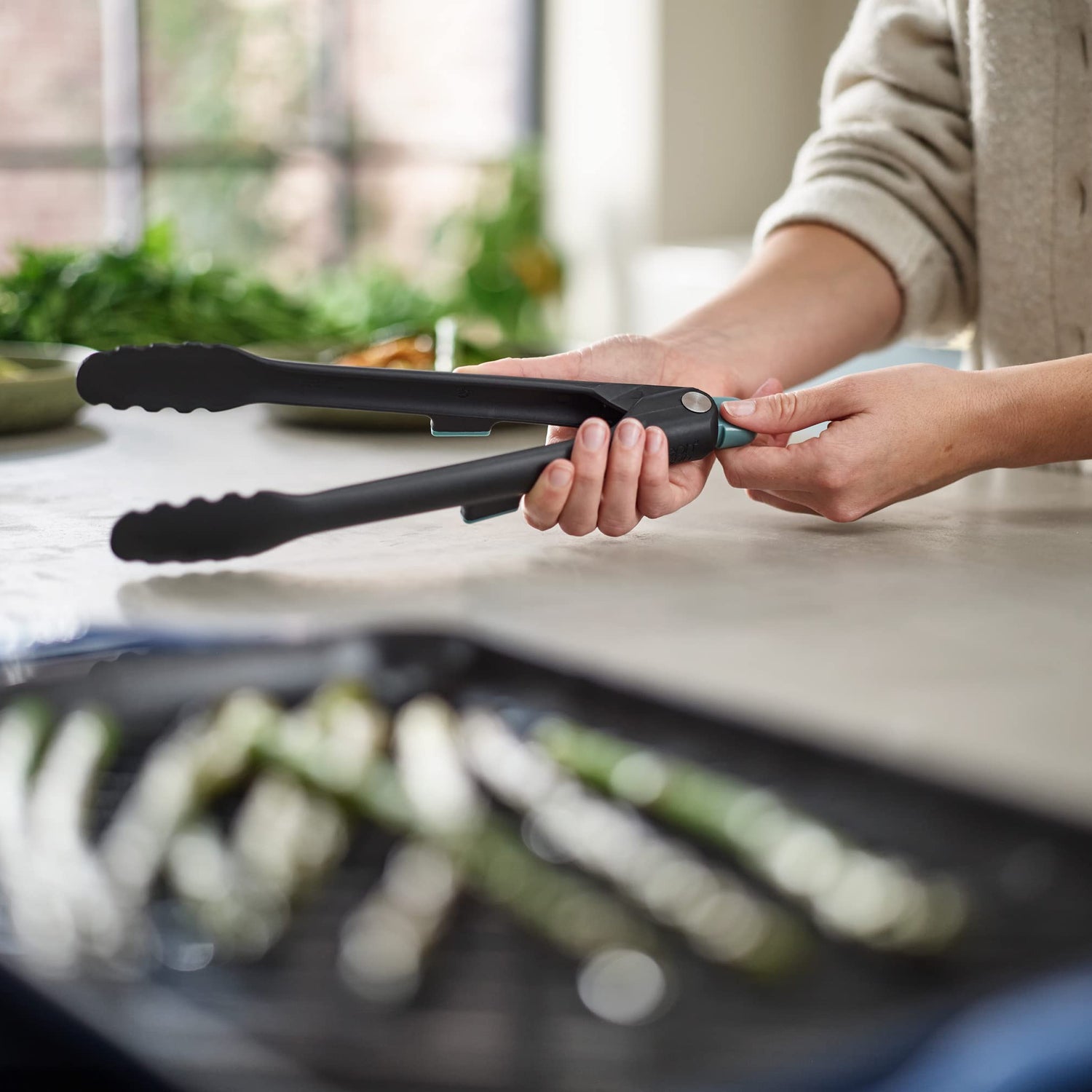 Joseph Joseph Duo Lockable Tongs Hygienic with Integrated Tool Rest & Non-Slip Feet, Suitable for Non-Stick Cookware, Heat-Resistant