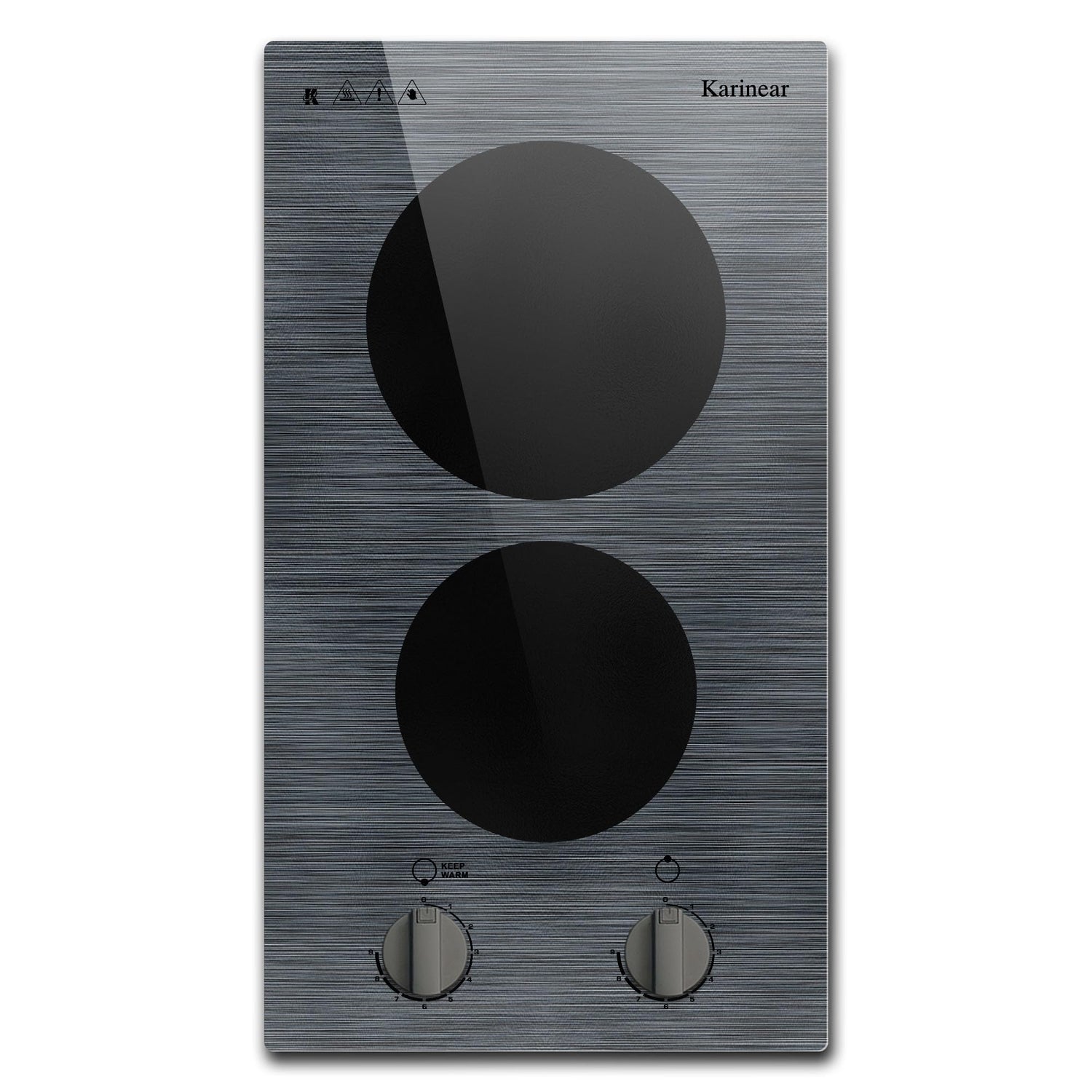 Details: The Karinear 2 burner electric cooktop is a versatile and efficient cooking companion. With knob control, you can easily adjust the 9 power levels to suit your culinary needs. Delivering 2000W of power, this 12-inch cooktop boasts a sleek wooden pattern design that complements any kitchen decor. Designed for 110V operation, this cooktop offers reliable performance and convenience for all your cooking tasks. Compact and space-saving, it's an ideal choice for small kitchens, apartments, or RVs. Enjoy hassle-free cooking with the Karinear 2 burner electric cooktop.