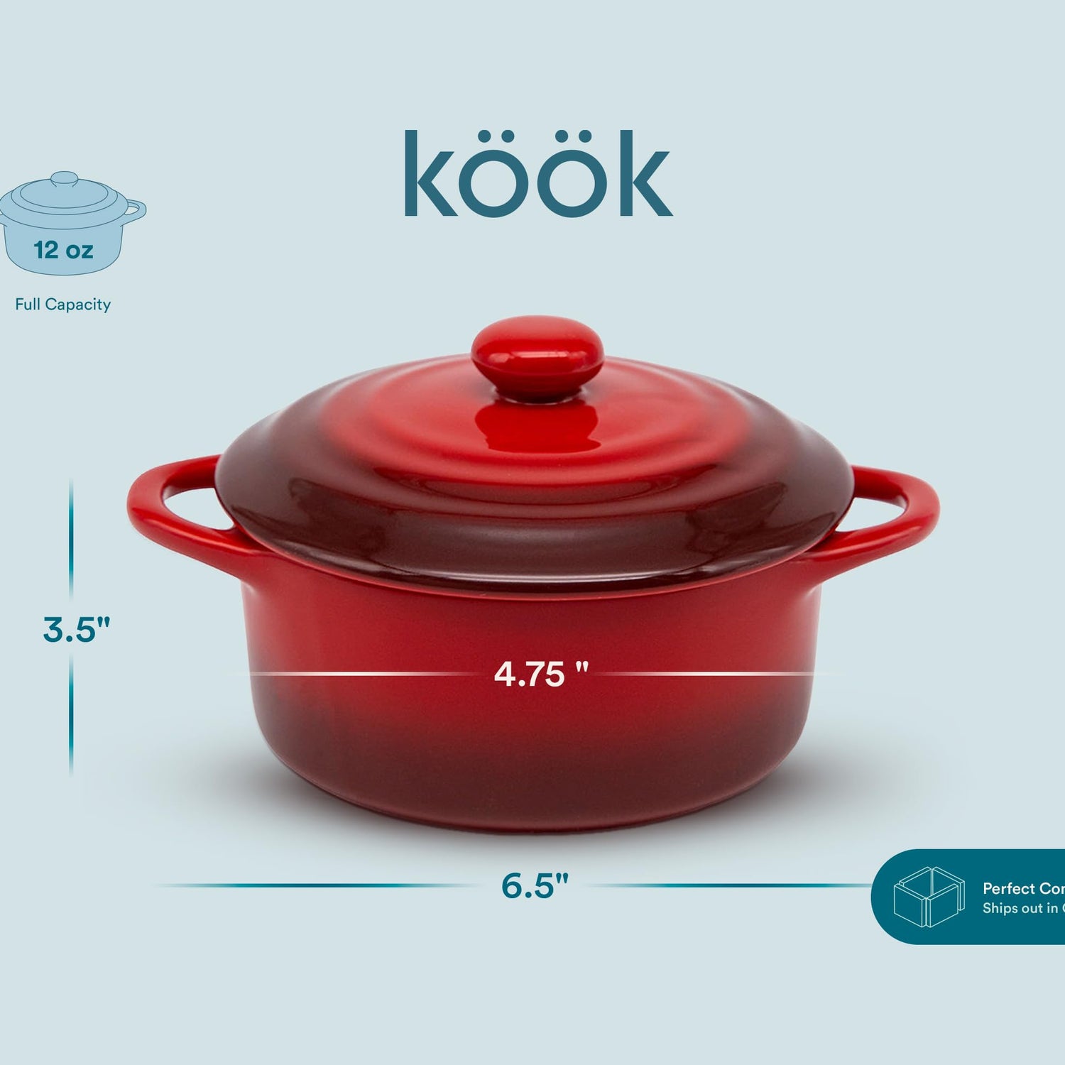 Kook Ceramic Mini Cocotte Set, Small Casserole Dishes with Lids and Handles, Individual Baking Ramekins, Oven, Microwave & Dishwasher Safe, Stoneware, 12 oz, Set of 4