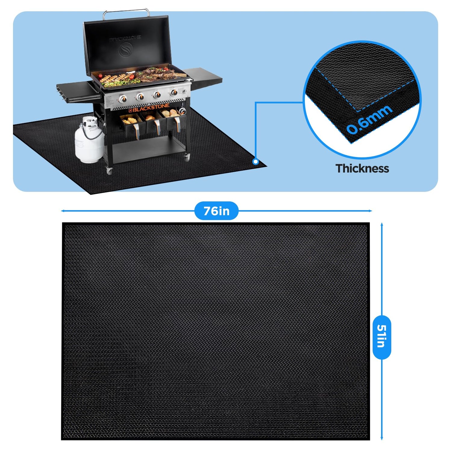 - Extra Large Size Grill Mat:This grill mat's size is 76 x 51 inches, which can protect the area below the fireplace from bursting embers or fire, keeping the environment hygienic and tidy after an outdoor barbecue