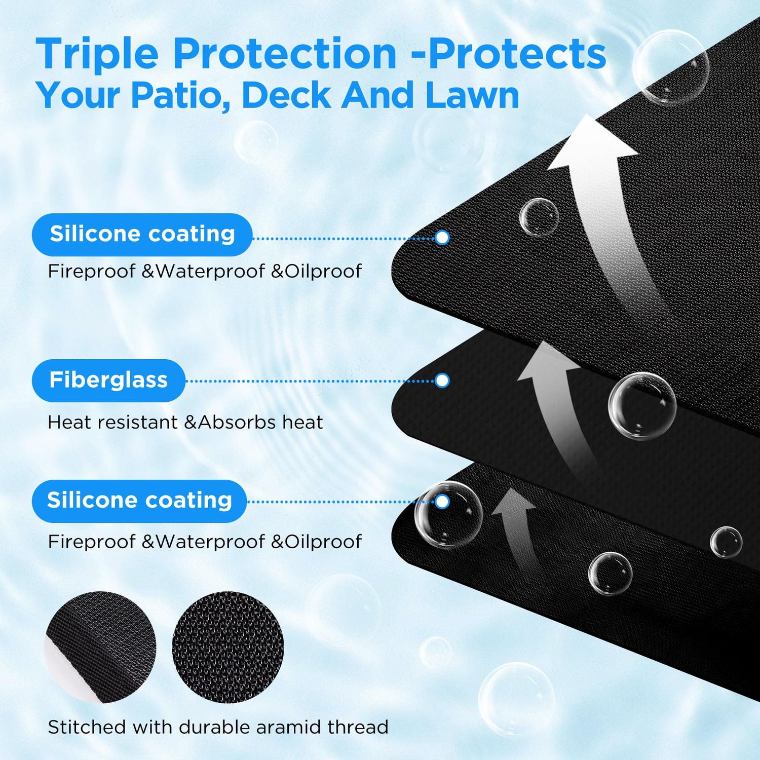 - Double-Sided Fireproof, Waterproof, Oil-Proof:We use more advanced fireproof materials for our grill mats. Made of fiberglass, they offer heat resistance up to 2000 degrees Fahrenheit. Enhanced with a thickened silicone coating on both sides, they provide triple-layered protection against fire, water, and oil