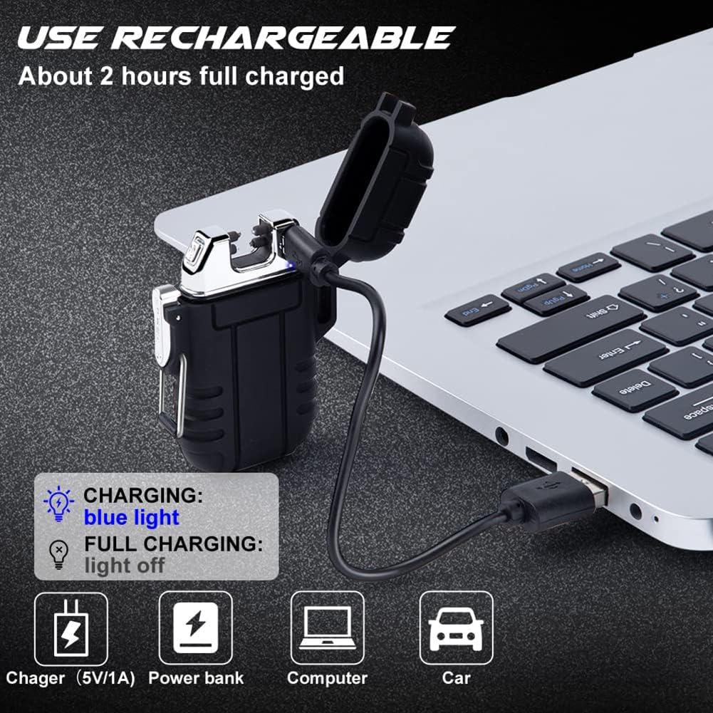 - USB RECHARGEABLE LIGHTER: the flameless dual arc lighter is powered by a rechargeable lithium battery, usb rechargeable electronic lighter, about 2 hours full charged. No gas or butane required, no more refilling, convenient and easy to use