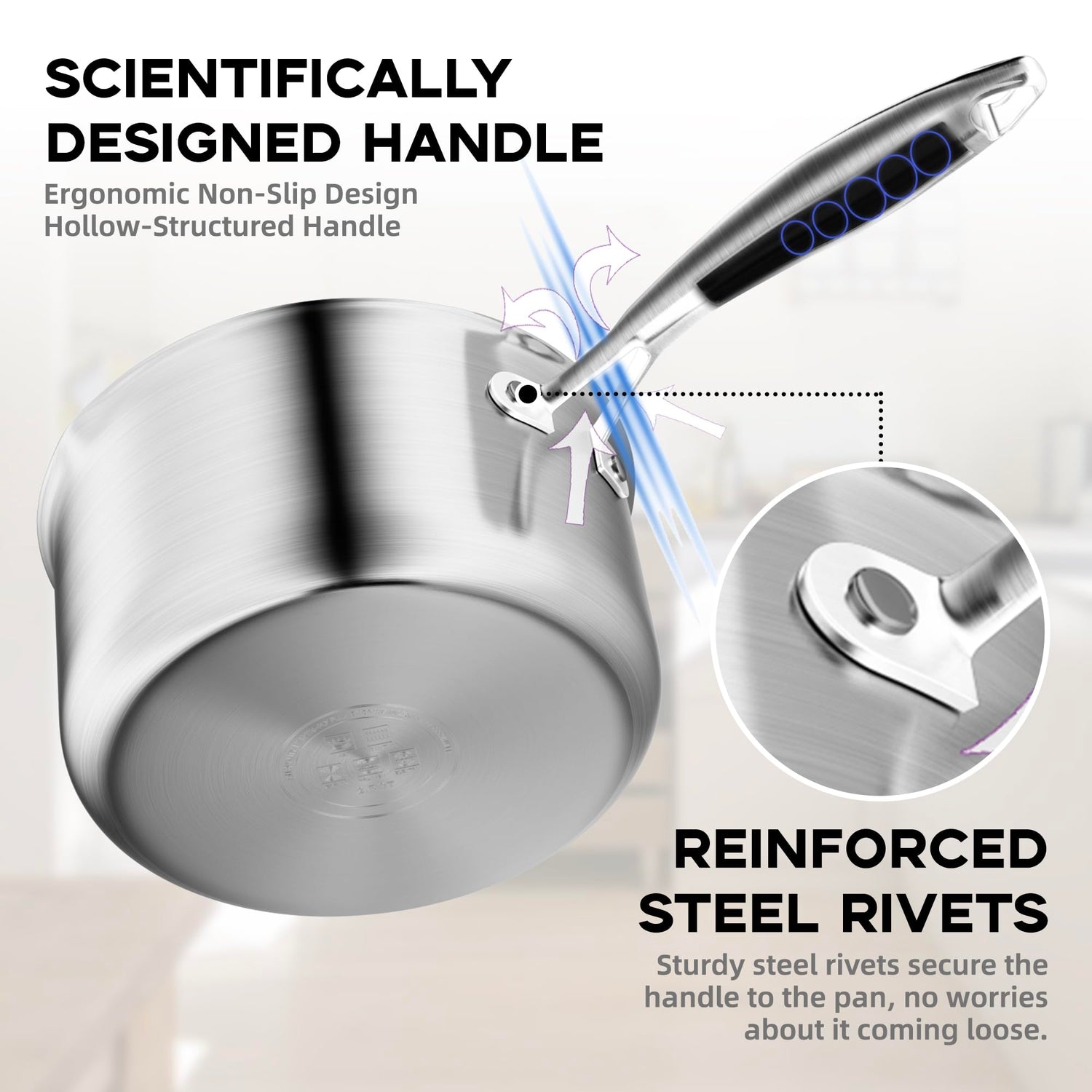 • Premium Stainless Steel Construction: Crafted from 18/10 Food-Grade stainless steel, our saucepan ensures durability, corrosion resistance, and easy cleaning for long-lasting performance