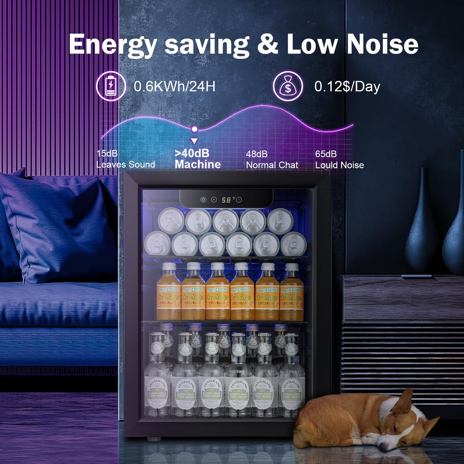 - ๐๐ฎ๐ข๐๐ญ ๐จ๐ฉ๐๐ซ๐๐ญ๐ข๐จ๐ง, ๐๐ง๐๐ซ๐ ๐ฒ-๐๐๐๐ข๐๐ข๐๐ง๐ญ: The mini beer fridge features a powerful cooling system that operates quietly, with a noise level of less than 40dB, providing a comfortable environment. Additionally, its advanced energy-efficient technology consumes only 0.6KW/h per day, greatly saving on energy costs.