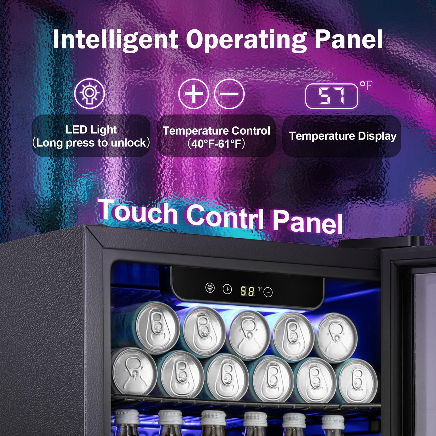 - ๐๐ฌ๐๐ซ-๐๐ซ๐ข๐๐ง๐๐ฅ๐ฒ ๐ญ๐จ๐ฎ๐๐ก ๐ญ๐๐ฆ๐ฉ๐๐ซ๐๐ญ๐ฎ๐ซ๐ ๐๐จ๐ง๐ญ๐ซ๐จ๐ฅ: Equipped with an easy-to-use touch temperature controller, allowing precise temperature adjustment to 1ยฐF (40ยฐF-61ยฐF), along with LED light control. With its simple and intelligent design, this drink fridge offers great convenience.